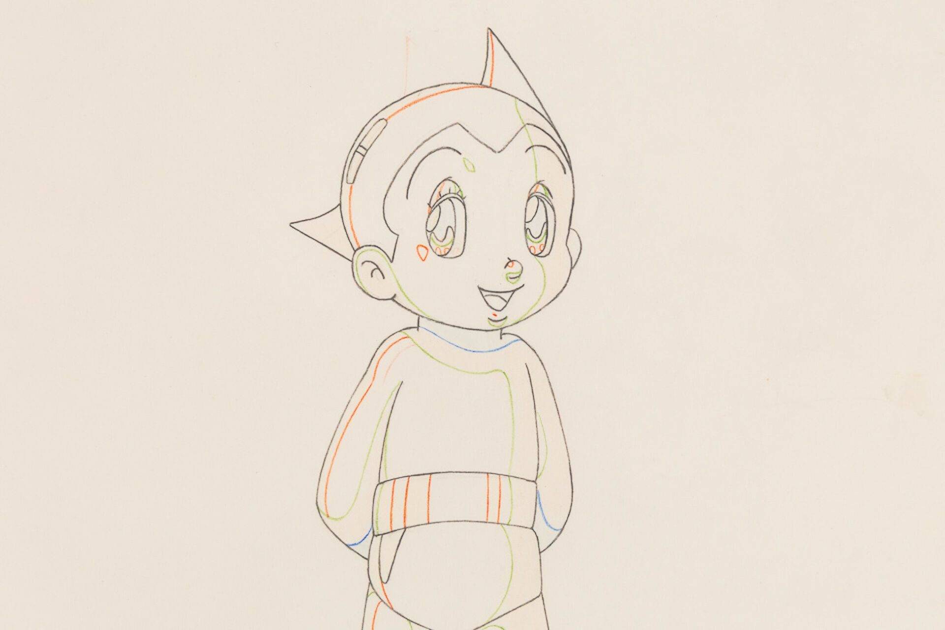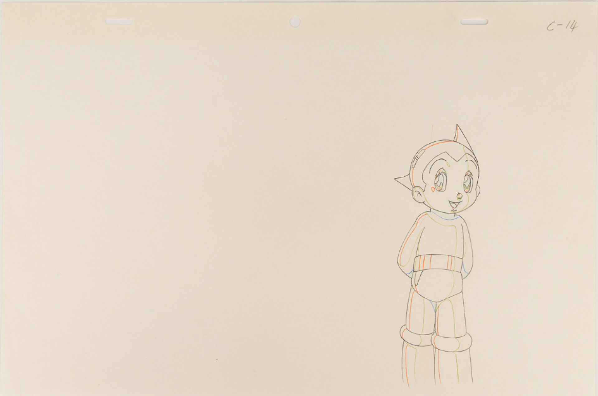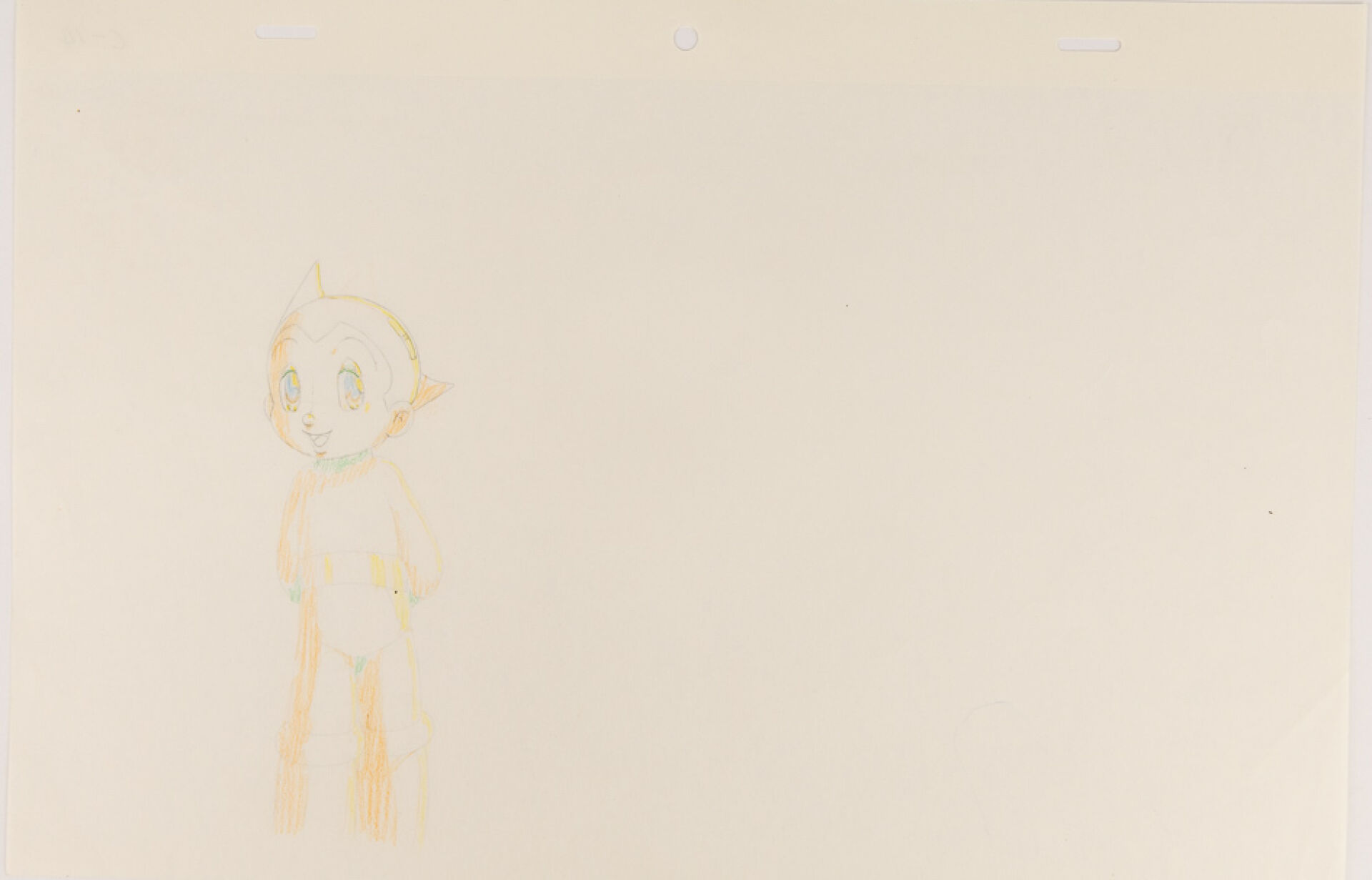 Osamu Tezuka (手塚 治虫) - Astro Boy (鉄腕アトム) - Astro, le petit robot (鉄腕アトム ou Tetsuwan Atomu) : Dôga (Douga) original à la mine de plomb et aux crayons de couleur représentant Astro souriant, les bras dans le dos. Haut. : 23 cm - Larg. : 34.5 cm Produit par Tezuka Productions en 2003. Expédition sur devis.