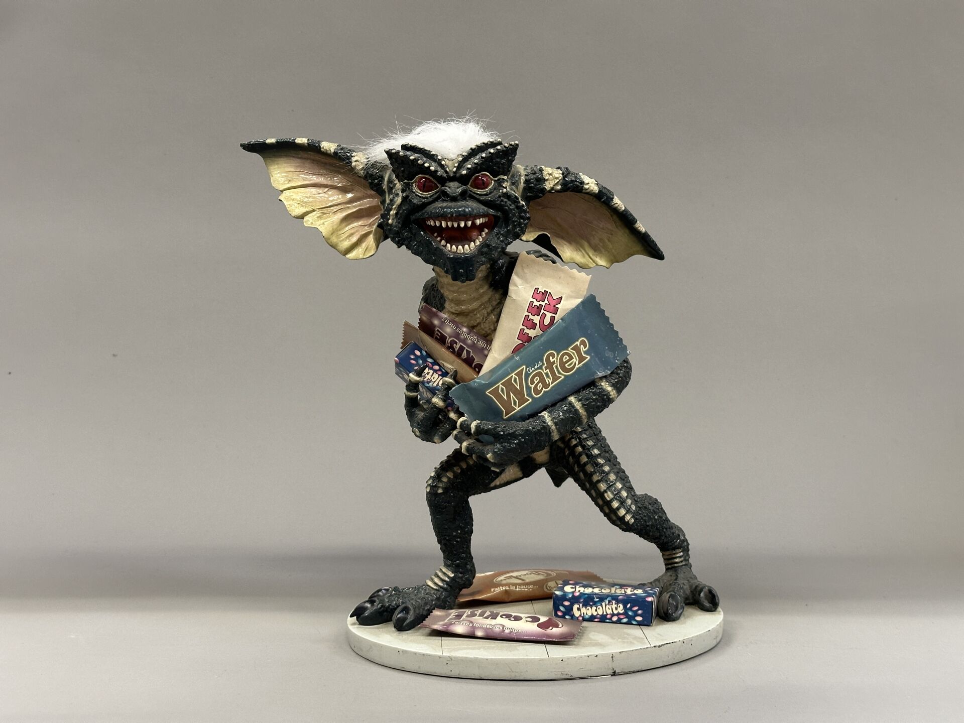 JUN PLANNING - Les Gremlins : Figurine en résine à l'effigie de "Stripe" volant des friandises. Sans boite, légères traces d'usage. Haut. : environ 35 cm (Ce lot chez vous en France métropolitaine pour 24.95 €)