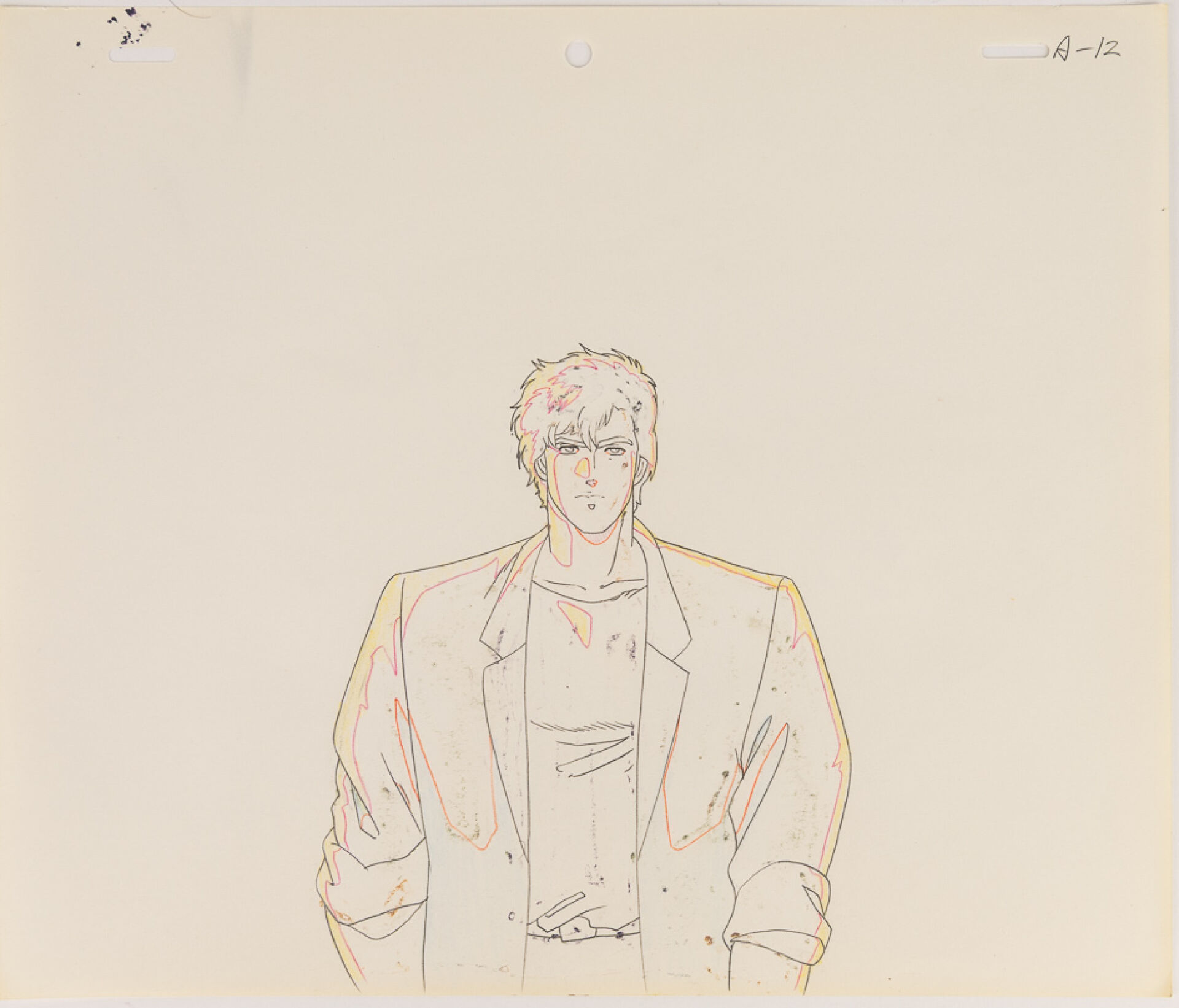 Tsukasa Hojo (北条 司) et Kenji Kodama (こだま 兼嗣) - Nicky Larson ou City Hunter (シティーハンター) Nicky Larson (冴羽 獠 ou Ryō Saeba) Magnifique Dôga (Douga) à la mine de plomb et aux crayons de couleur représentant Nicky Larson avançant vers la caméra (scène de l'un des génériques de fin VO). Haut. : 23 cm - Larg. : 27 cm Produit par Sunrise Studios de 1987 à 1991 (Expédition sur devis)