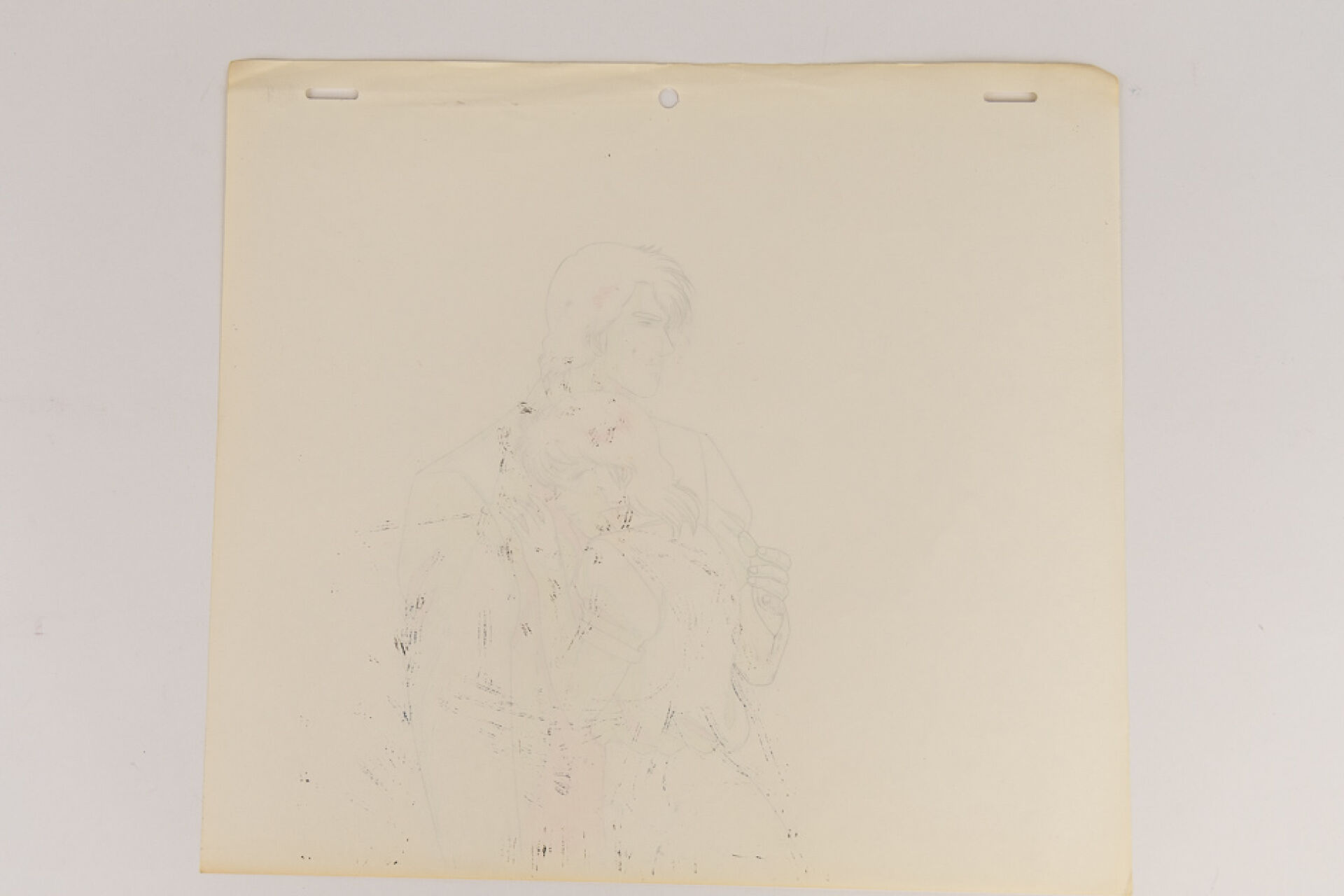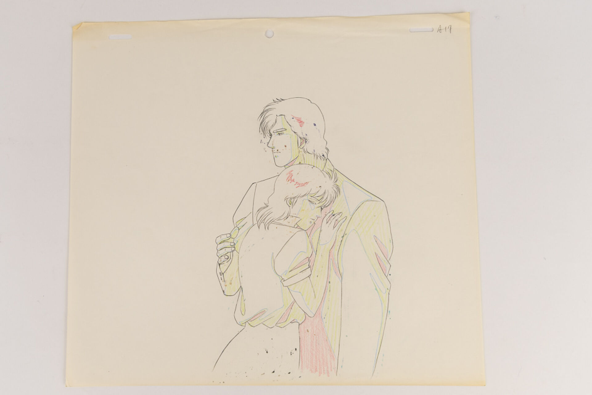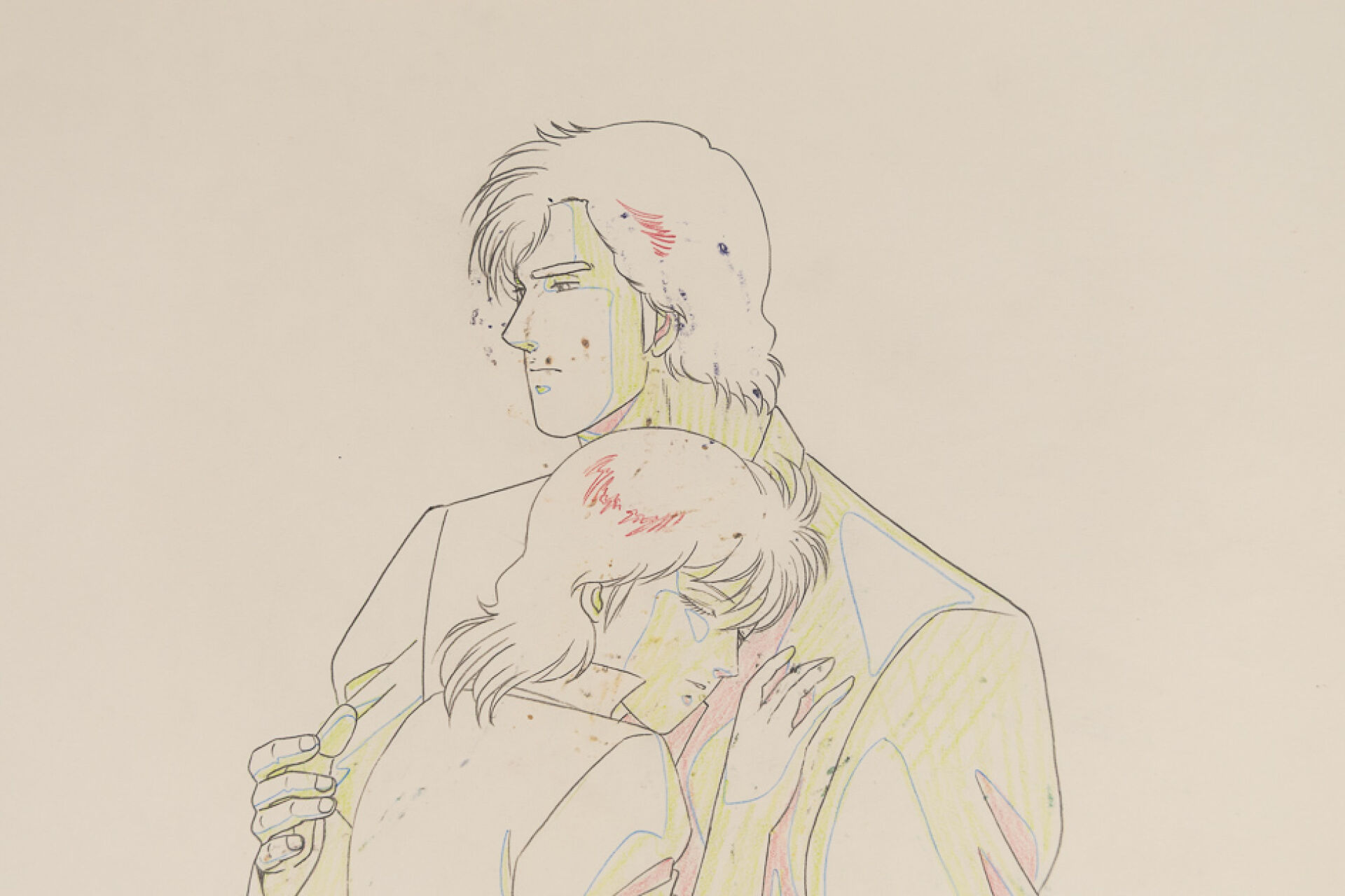 Tsukasa Hojo (北条 司) et Kenji Kodama (こだま 兼嗣) - Nicky Larson ou City Hunter (シティーハンター) - Laura Marconi (槇村 香 ou Makimura Kaori) et Nicky Larson (冴羽 獠 ou Ryō Saeba) Magnifique Dôga (Douga) à la mine de plomb et aux crayons de couleur représentant Laura Marconi blottie contre Nicky (scène de l'un des génériques de fin VO). Haut. : 24,2 cm - Larg. : 26,8 cm. Produit par Sunrise Studios de 1987 à 1991 (Expédition sur devis)47