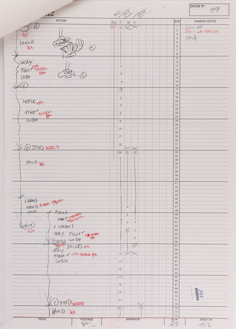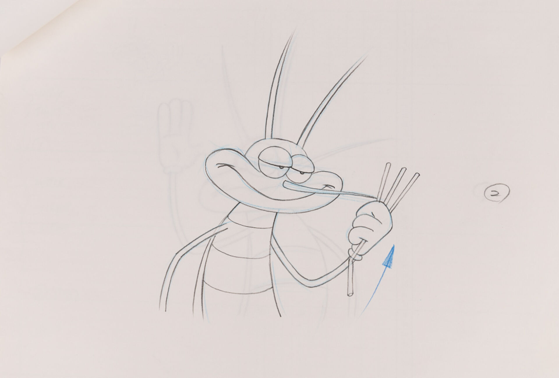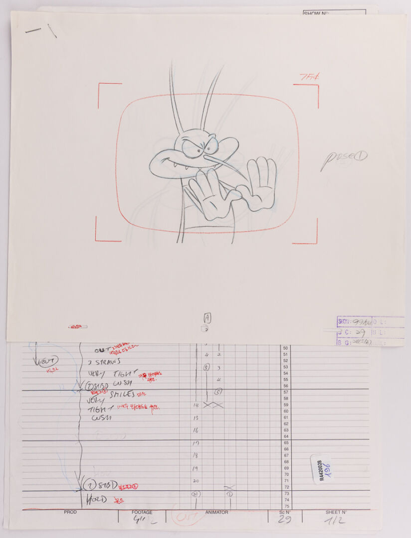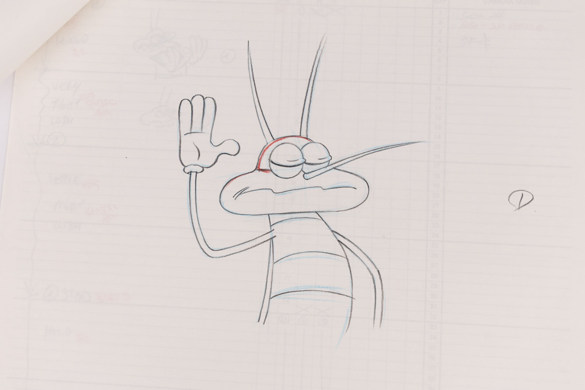 Jean-Yves Raimbaud et Olivier Jean-Marie - Oggy et les Cafards Ensemble de trois dessins originaux à la mine de plomb et aux crayons de couleur mettant en scène Marky trichant à la courte paille. On y joint deux time-sheets associées. Dim. (dessins) : Haut. : 26.6 cm x Larg. : 31,8 cm Dim. (time-sheet) : Haut. : 41,8 cm x Larg. : 29,6 cm Produit de 1998 à 2018 (Expédition sur devis)