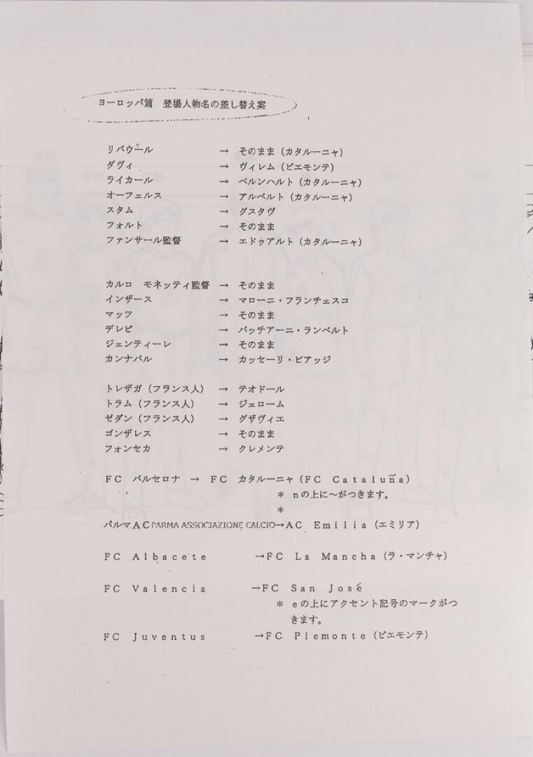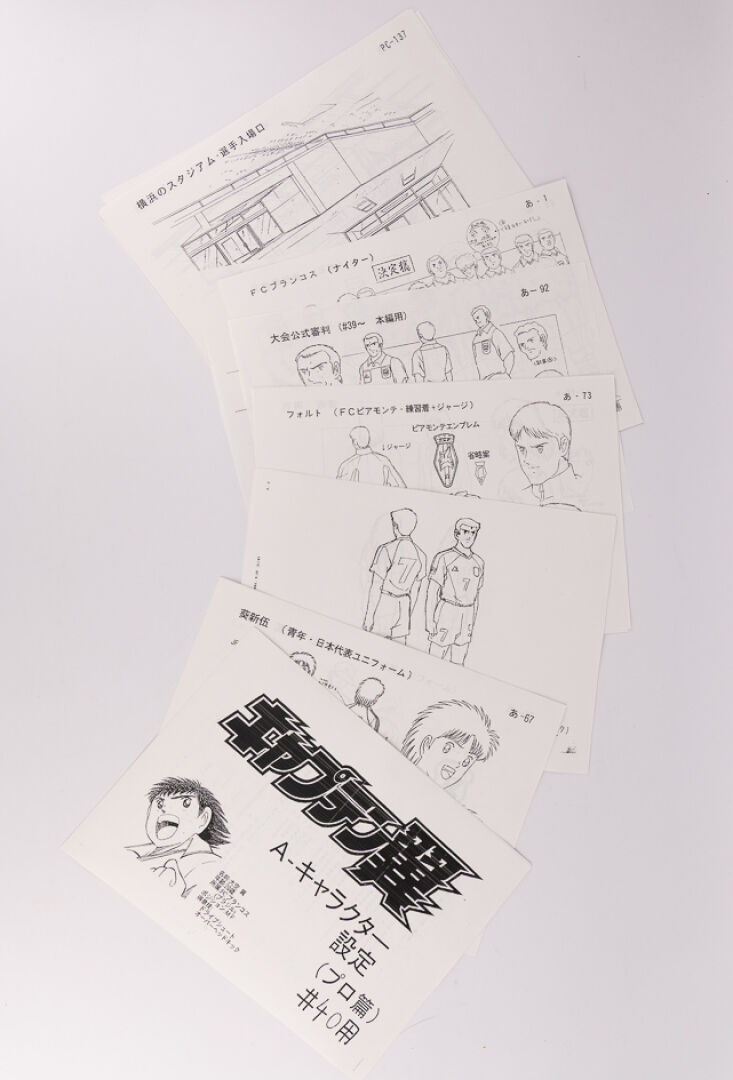 d'après Yōichi Takahashi (高橋 陽一) - Olive et Tom ou Captain Tsubasa (キャプテン翼) 2002 Fort ensemble d'environ 65 copies de setteï (model sheets) représentant les différents personnages du shōnen. Ces ensemble de copie sont utilisées comme modèles de référence dans les studios pour la production des séries animées. Haut. : 21 cm x Larg. : 29,7 cm (Expédition sur devis)