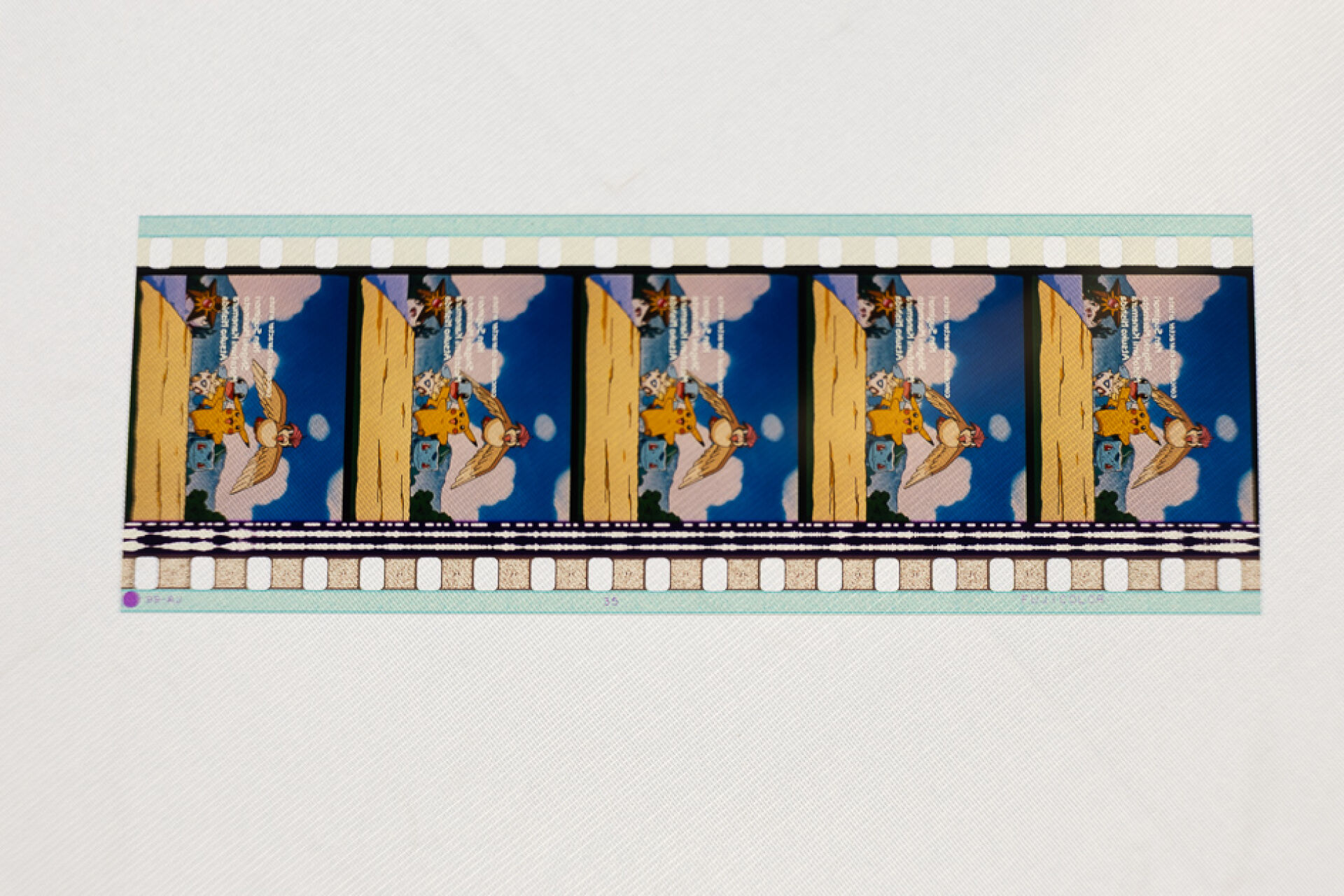 POKEMON (ポケモン ) - Fragment de pellicule cinéma 35 mm original représentant les personnages de Pikachu, Bulbizarre, Togepi, Roucoups , Stari , Poissirene. Ttiré du générique du film : Les vacances d'été de Pikachu ( japonais :ピ カ チ ュ ウ の な つ や す み Les vacances d'été de Pikachu est le premier court métrage de Pikachu . Il a fait ses débuts dans les salles japonaises le 18 juillet 1998 Bel état, quelques microrayures. Expédition sur devis