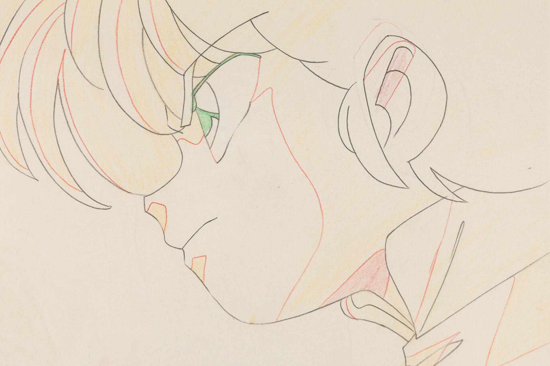 Rumiko Takahashi (高橋 留美子) - Ranma ½ (らんま½) - Ranma Saotomé (早 乙 女 乱馬 ou VF: Ranma Vincent) Dôga (Douga) original à la mine de plomb et aux crayons de couleur représentant Ranma Saotomé en pleine concentration de profil en, légère contre-plongée. Haut. : 25 cm - Larg. : 27 cm Rousseurs en haut de la feuille. Produit par studio Deen entre 1989 et 1992. (Expédition sur devis)