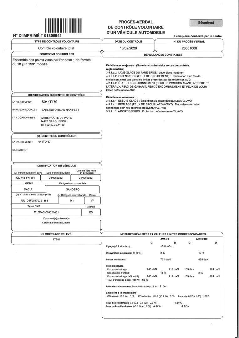 BVM5- CLIM- RADIO- GPS- 4 VITRES ET RETROS ELECT- REGULATEUR DE VITESSES- RADAR DE RECUL. SIEGES EN TISSU TACHES- PLASTIQUES RAYES ET TACHES. RAYURES D'USAGE- FROTTEMENTS SUR LE PARE CHOCS AR- FEU ARG CASSE. DEFAILLANCES MAJEURES: LAVE GLACE DU PARE BRISE INOPERANT- DEFAUT D'ORIENTATION DU FEU DE CROISEMENT AVG- GLACE DEFECTUEUSE DU FEU DE GABARIT ARG. DEFAILLANCES MINEURES: BALAI D'ESSUIE GLACE AVG ET AVD DEFECTUEUX- MAUVAISE ORIENTATION DES FEUX DE BROUILLARD AVG ET AVD- PROTECTION DEFECTEUSE DES AMORTISSEURS AVG ET AVD. FRAIS VOLONTAIRES 20% HT.
