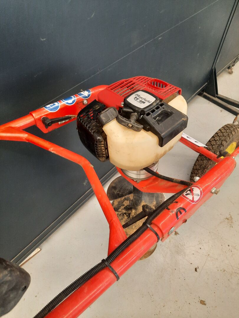 Tarière thermique PFLANZFUCHS, modèle PF 400 avec mèche diamètre 250 mm, sur roue VENDU SUR DESIGNATION - VISIBLE SUR RENDEZ VOUS LA VEILLE OU LE MATIN DE LA VENTE EN NOTRE HOTEL DES VENTES 173 BIS ROUTE DE LORIENT 35132 VEZIN LE COQUET - RETRAIT SOUS UNE SEMAINE POST VENTE
