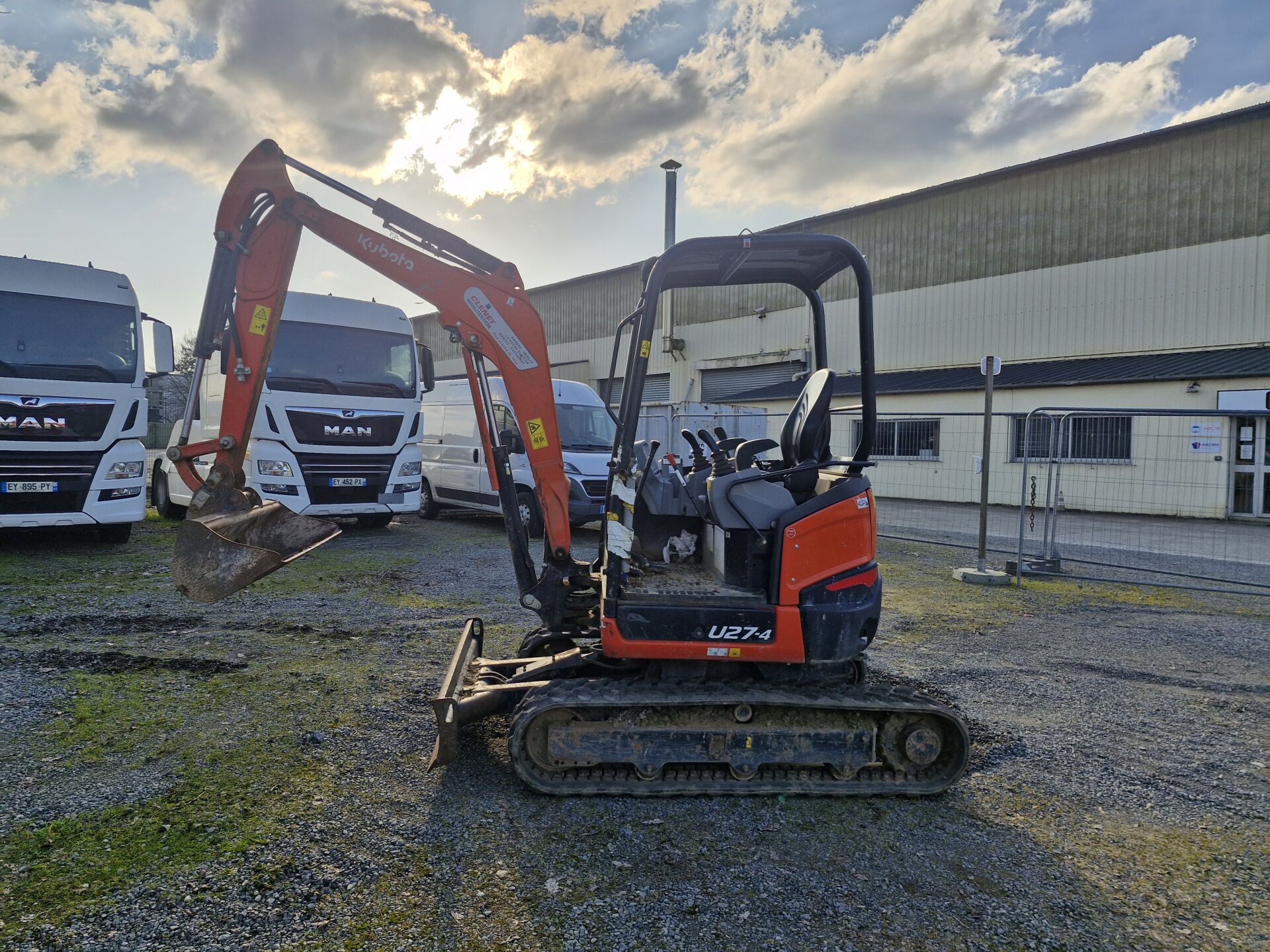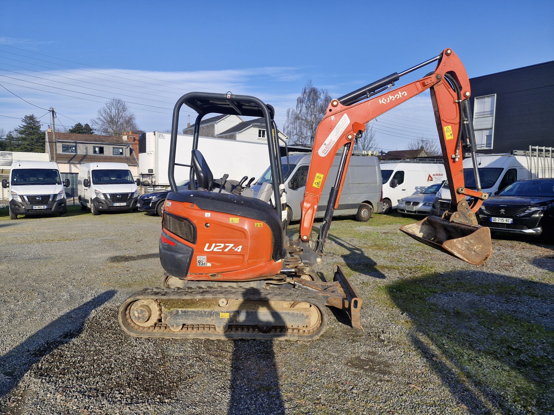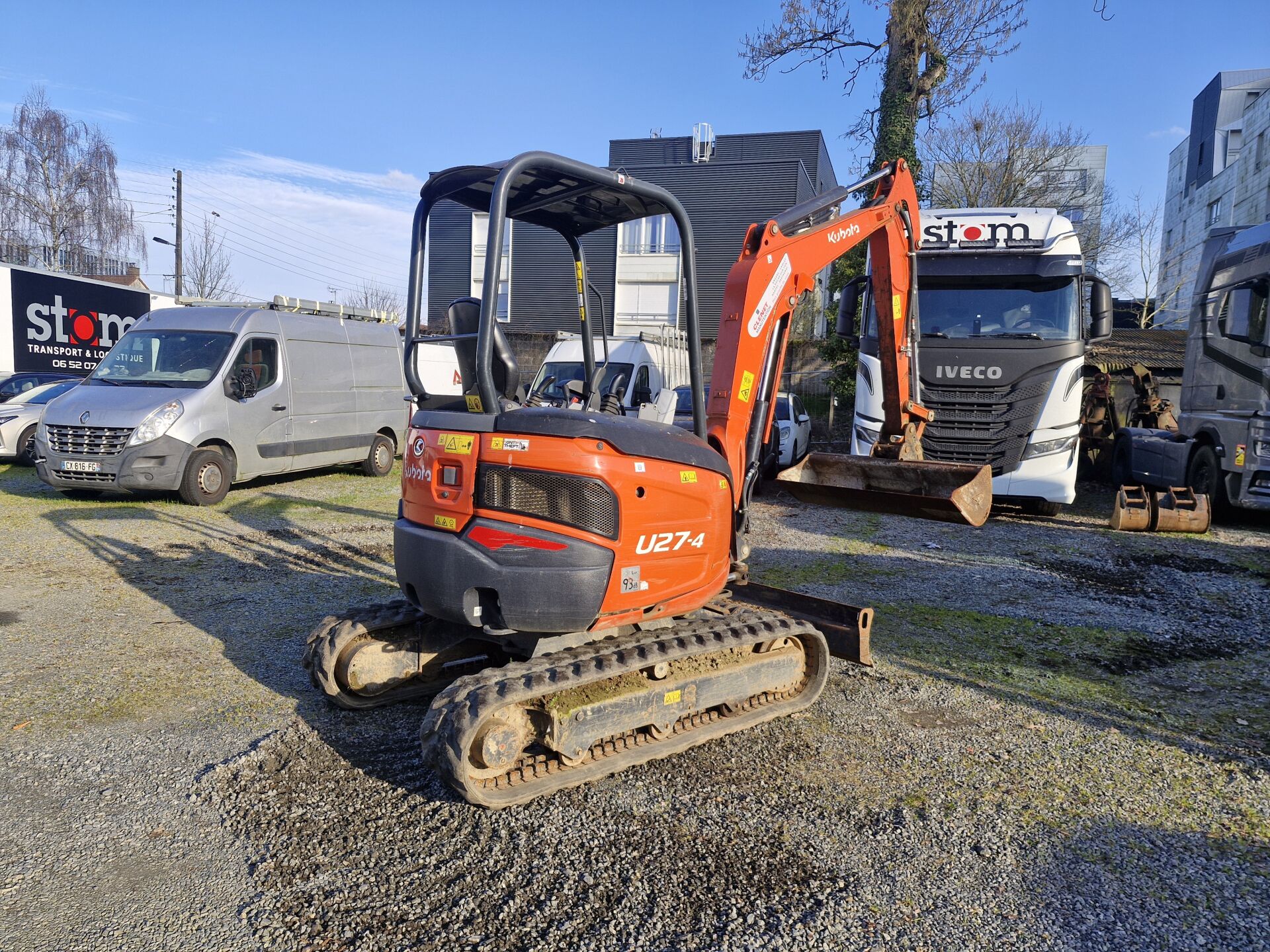 Minipelle KUBOTA U27-4 Canopy N/S : KBCGH11BKMZM72917 (2565 kg) (2022). Chenilles caoutchouc et 3 godets (300, 500 et 1200 mm) Compteur : 558,8 h visible le 12/03/2026 à Nantes, 17 rue de l'ouche buron de 8H00 à 9H00.