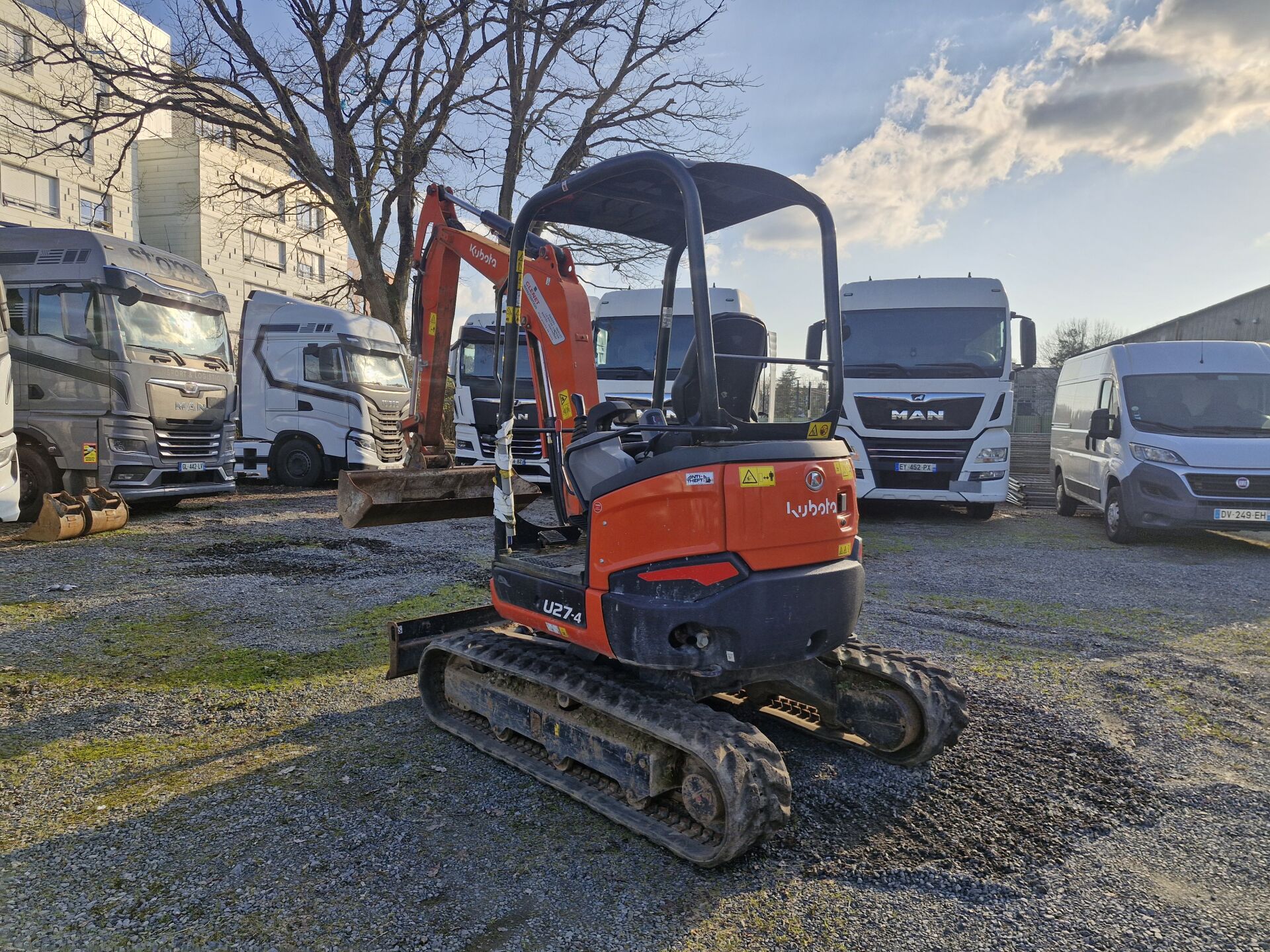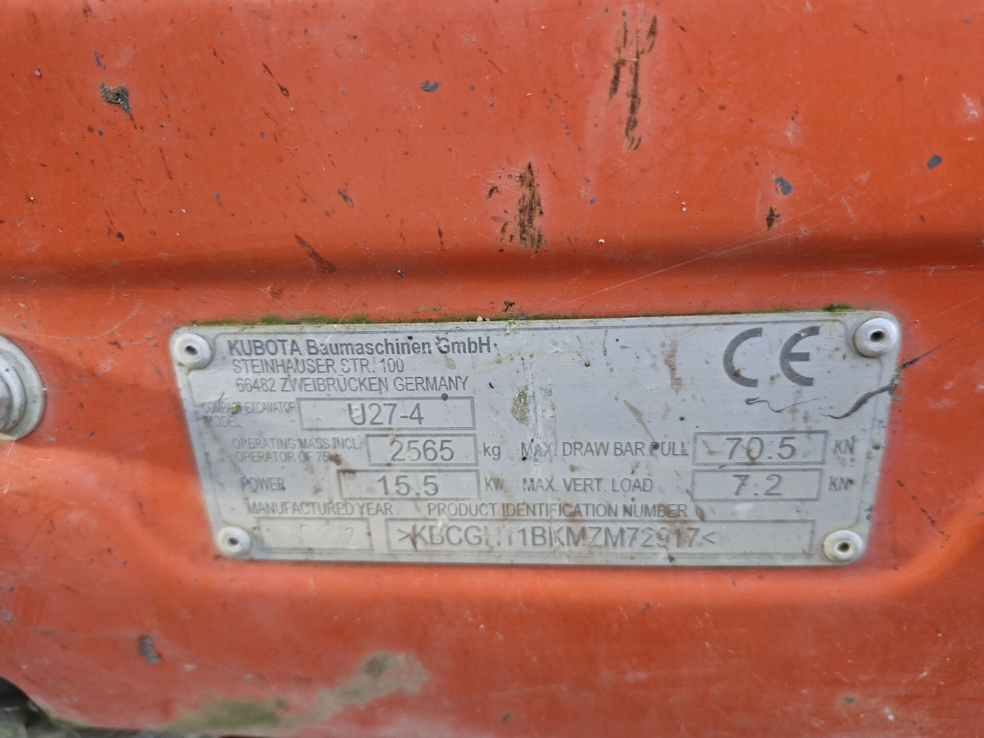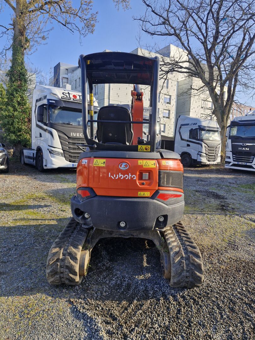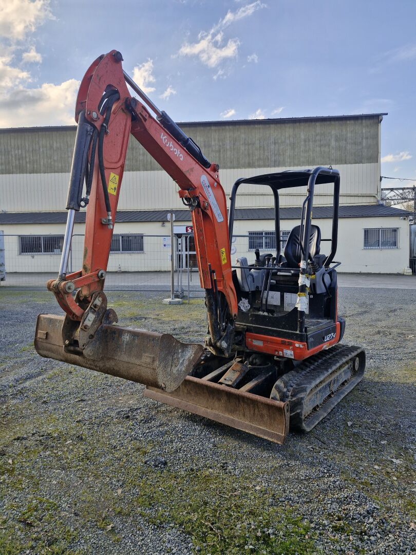 Minipelle KUBOTA U27-4 Canopy N/S : KBCGH11BKMZM72917 (2565 kg) (2022). Chenilles caoutchouc et 3 godets (300, 500 et 1200 mm) Compteur : 558,8 h visible le 12/03/2026 à Nantes, 17 rue de l'ouche buron de 8H00 à 9H00.