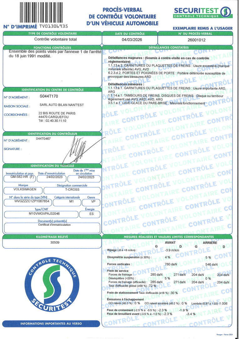 BVM6- CLIM BI ZONES- RADIO- GPS- CAMERA DE RECUL- 4 VITRES ELECT- VITRES AR TEINTEES- RETROS ELECT RABAT- REGULATEUR DE VITESSES. SIEGES EN TISSU TACHES. CARROSSERIE RAYEE- PORTE ARD ENDOMMAGEE ET COUPEE- IMPACT SUR LA PORTE AVD. DEFAILLANCES MAJEURES;: USURE EXCESSIVE DES GARNITURES OU PLAQUETTES DE FREINS AVG ET AVD- PORTE ARD DETERIOREE. DEFAILLANCES MINEURES: USURE IMPORTANTE DES GARNITURES OU PLAQUETTES DE FREINS ARD ET ARG- DISQUES OU TAMBOURS DE FREINS AVG,ARD,AVD ET ARG LEGEREMENT USES- MAUVAIS FONCTIONNEMENT DU LAVE GLACE. FRAIS JUDICIAIRES 11.9% HT.