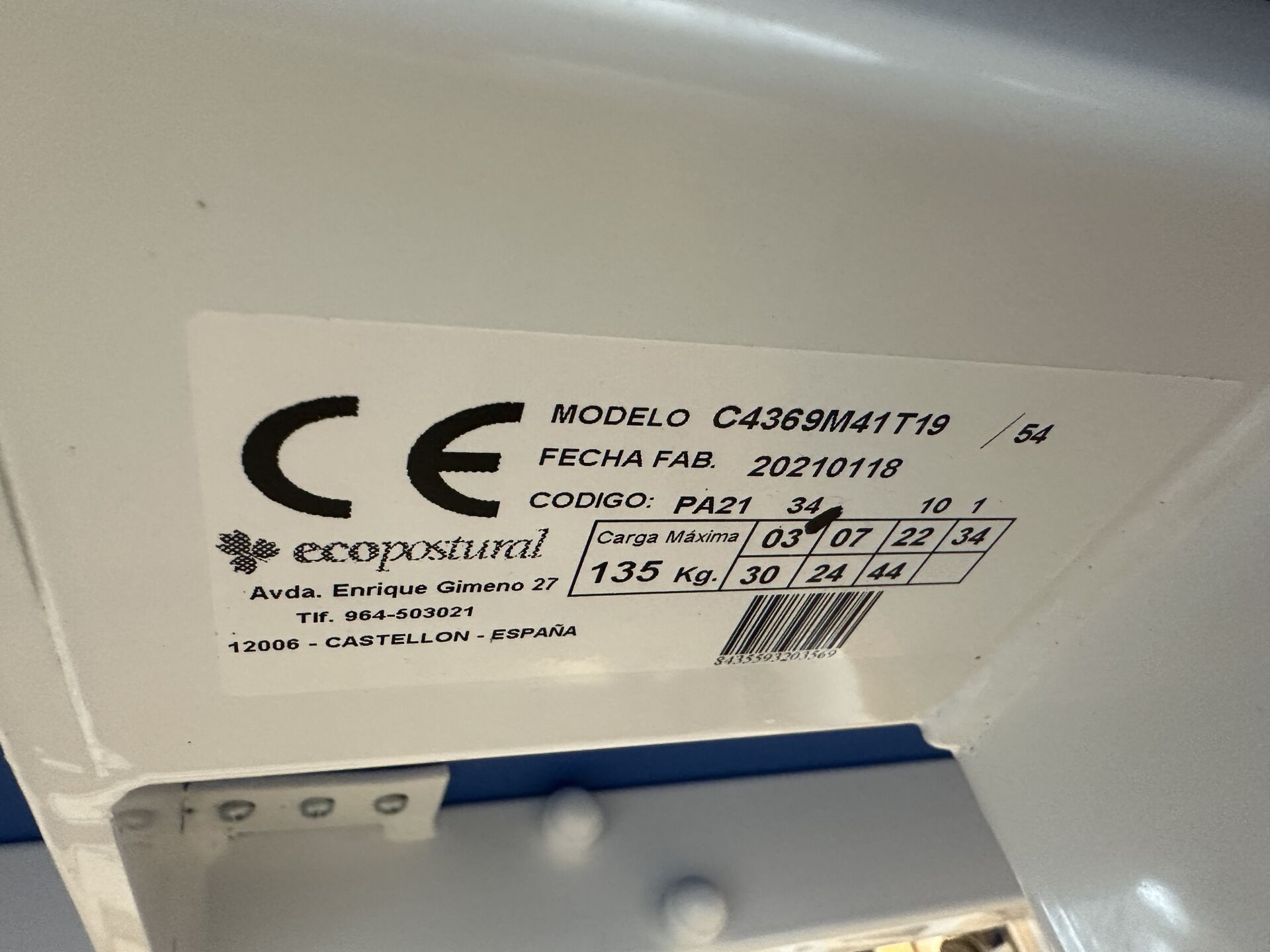 1 fauteuil de soins manuel dit fauteuil de prélèvement, ECOPOSTURAL bleu modèle C4369M41T19 135 kg de 2021