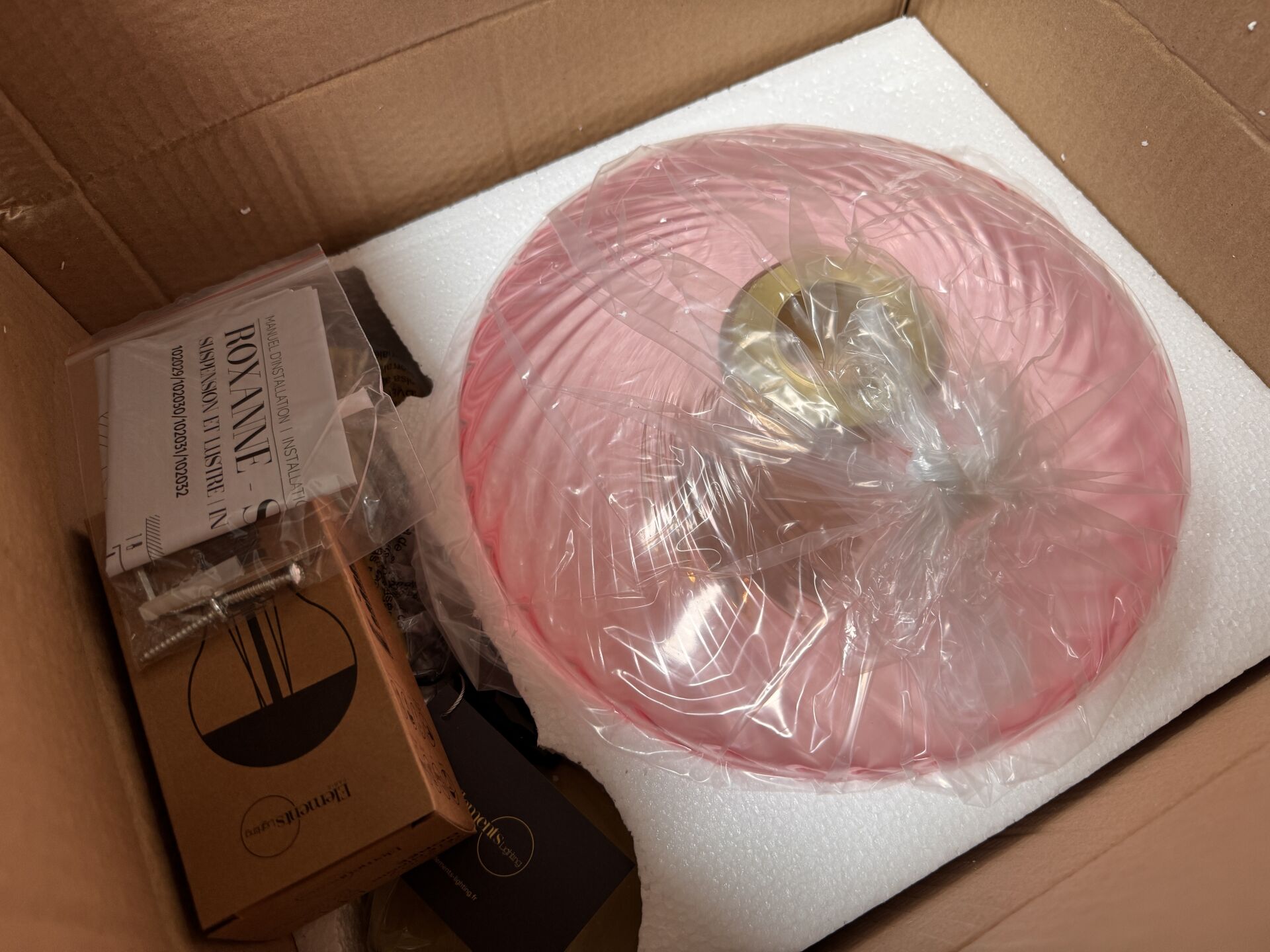 FORT ENSEMBLE DE PETITS MOBILIERS ET DECORATIONS (environ 1m3) DONT BAIN DE SOLEIL, TABLE BASSE, ETAGERE, LUMINAIRE, FAUTEUIL / DONT SUSPENSION ELEMENT LIGHTING ROXANNE ( présentation du lot comportant des images d'illustrations ) (expédition sur devis) Lot issu de colis non réclamés : état de fonctionnement non garanti.