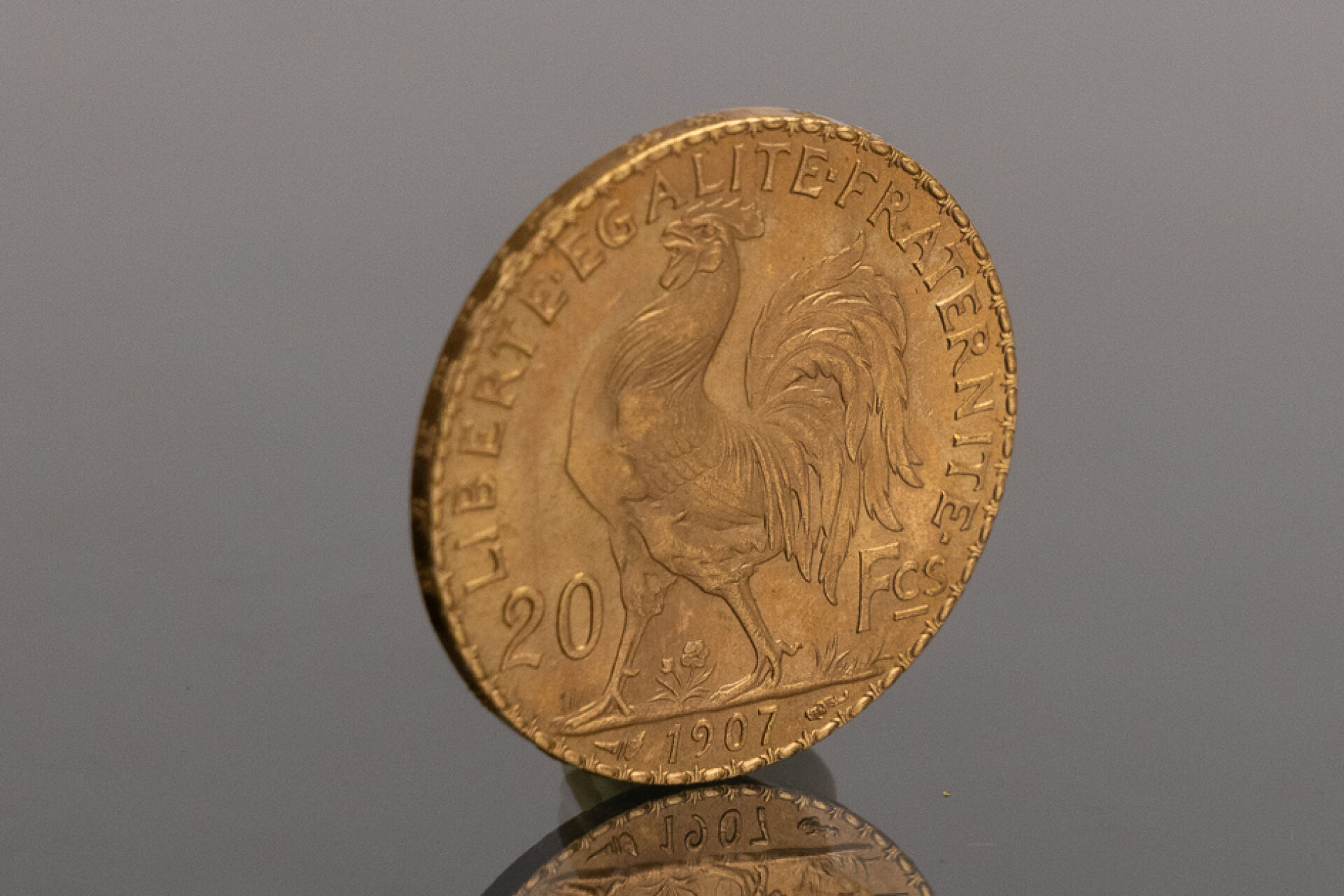 Pièce de 20 francs en or Marianne / Coq, 1907. Poids : 6,47 gr PAS DE LIVE POUR CE LOT PIECES CONSERVEES A LA BANQUE - VENDUES SUR DESIGNATION - VISIBLES SUR RENDEZ-VOUS UNIQUEMENT 48 H AVANT LA VENTE - DELIVRANCE SUR RENDEZ-VOUS UNIQUEMENT 72 HEURES A L'AVANCE