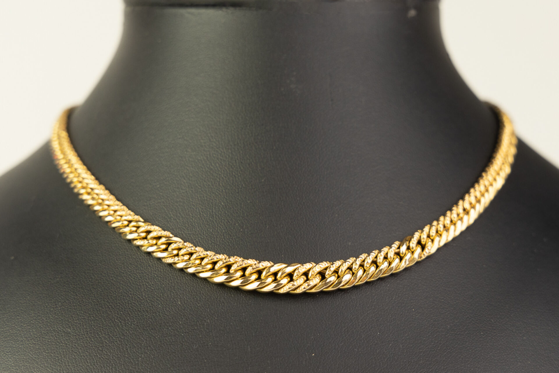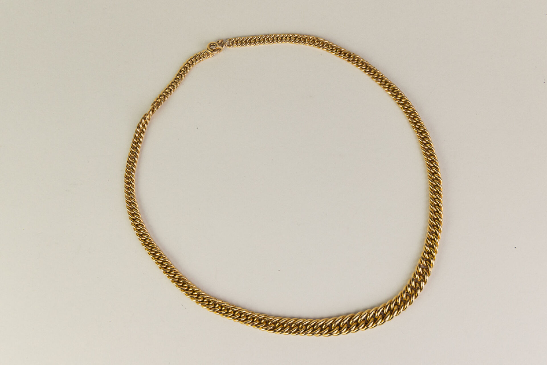 Collier en or jaune 18 k (750 millièmes) à mailles américaines en cascade. Longueur : 42 cm - Poids : 14.12 gr