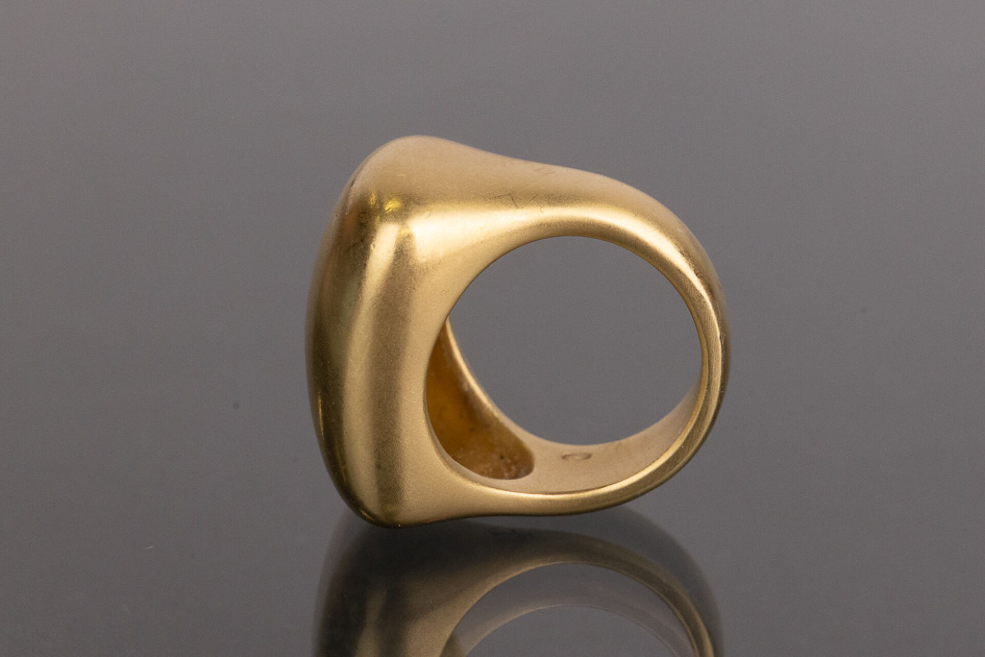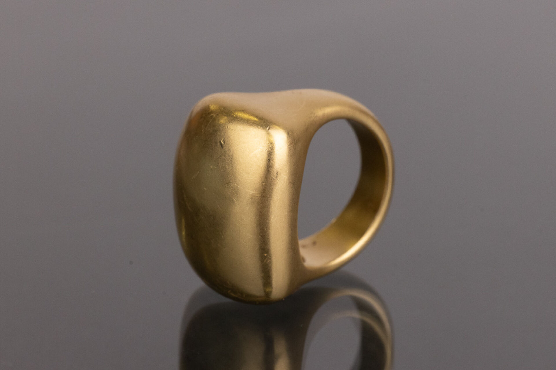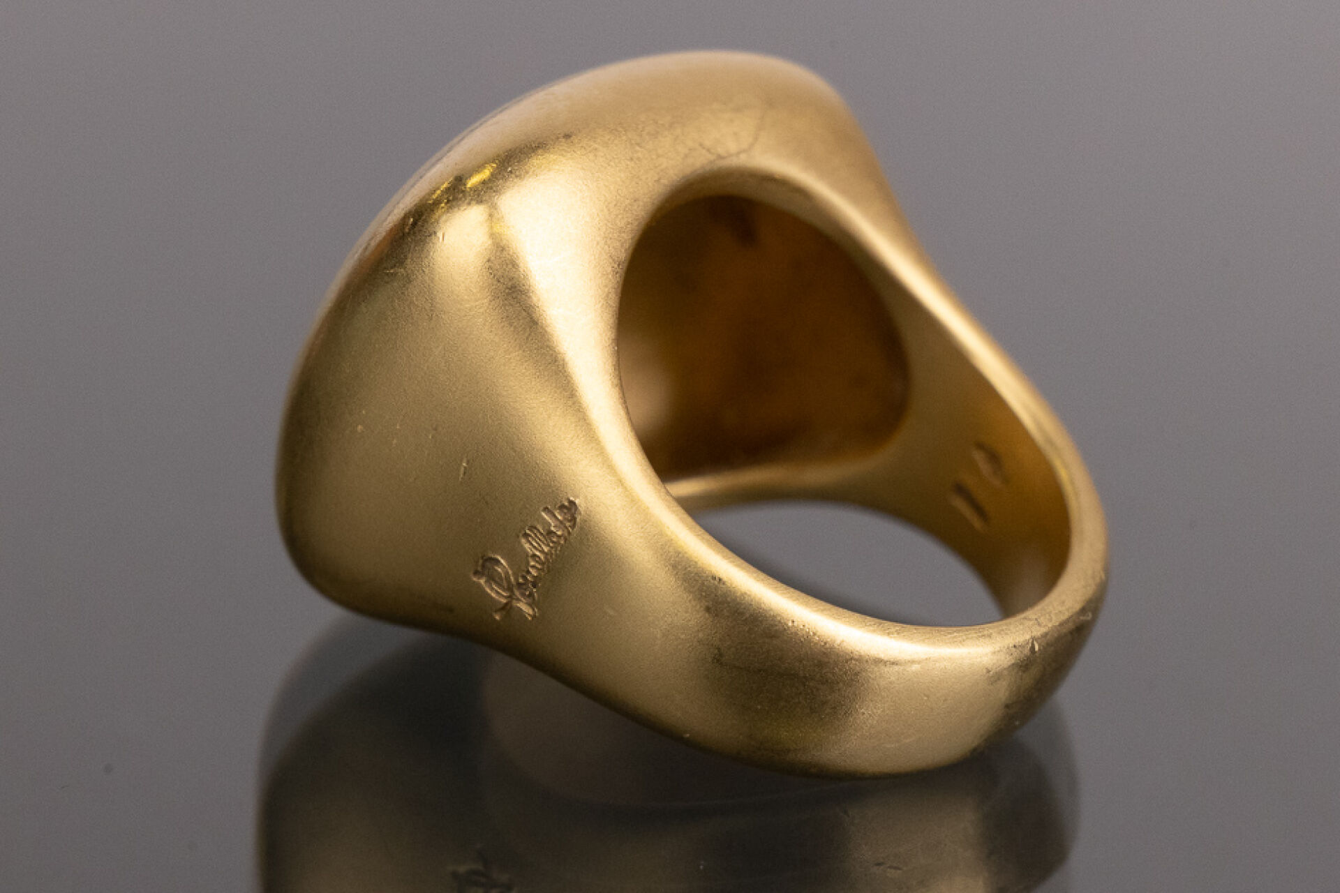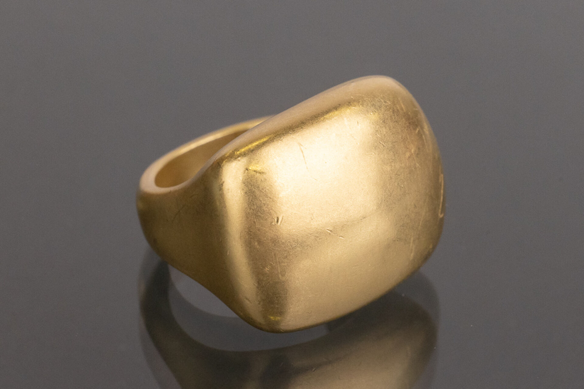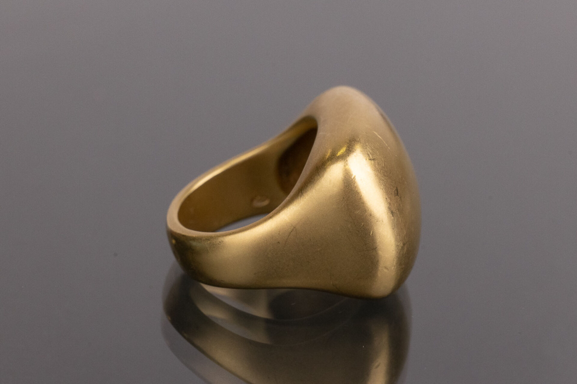 POMELLATO - Bague chevalière bombée en or jaune 18 k (750 millièmes, poinçon aigle). Signée, dans son écrin. Déjà portée, quelques traces d'usage. Taille 51 - Poids : 21.71 g