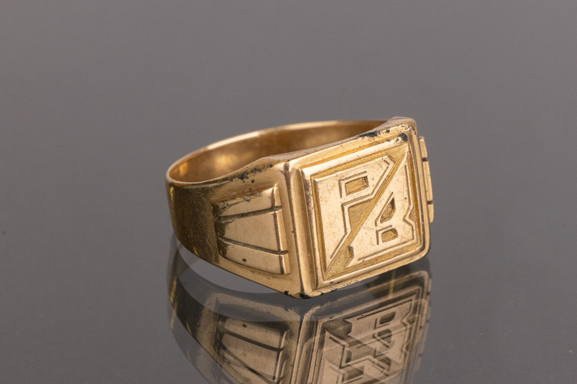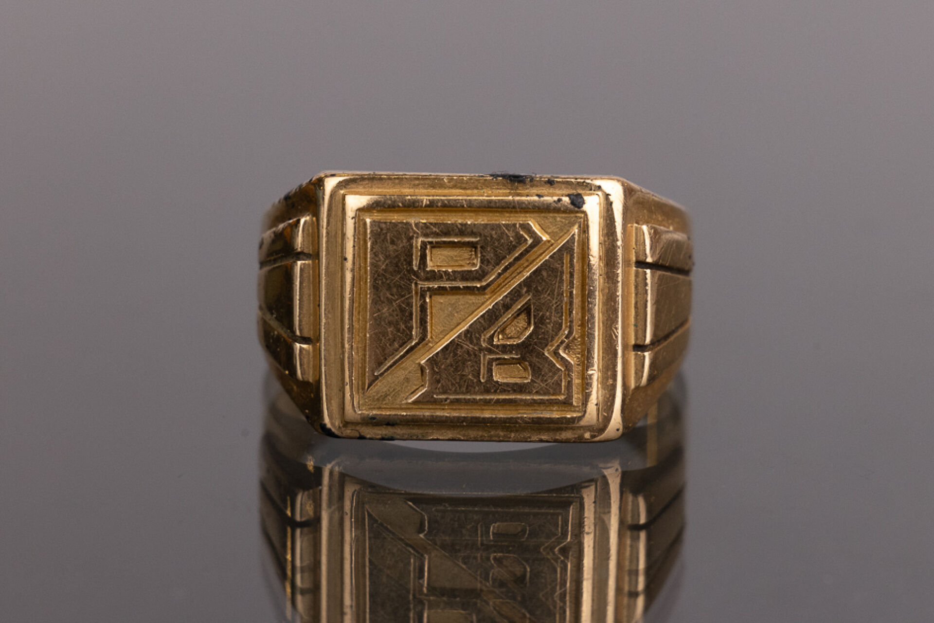 Initialière en or jaune 18k (750 millièmes) monogrammé "PB". Poids : 14.69 gr - Tour de doigt 69