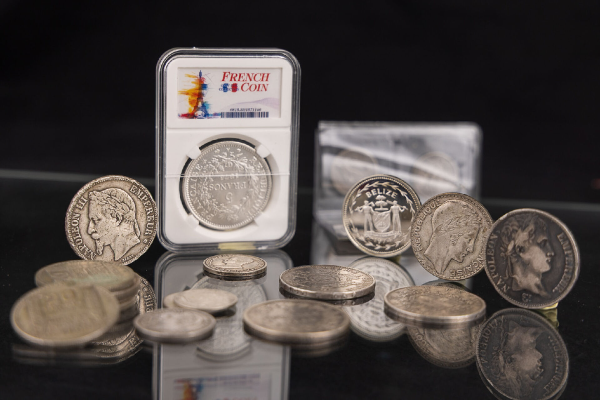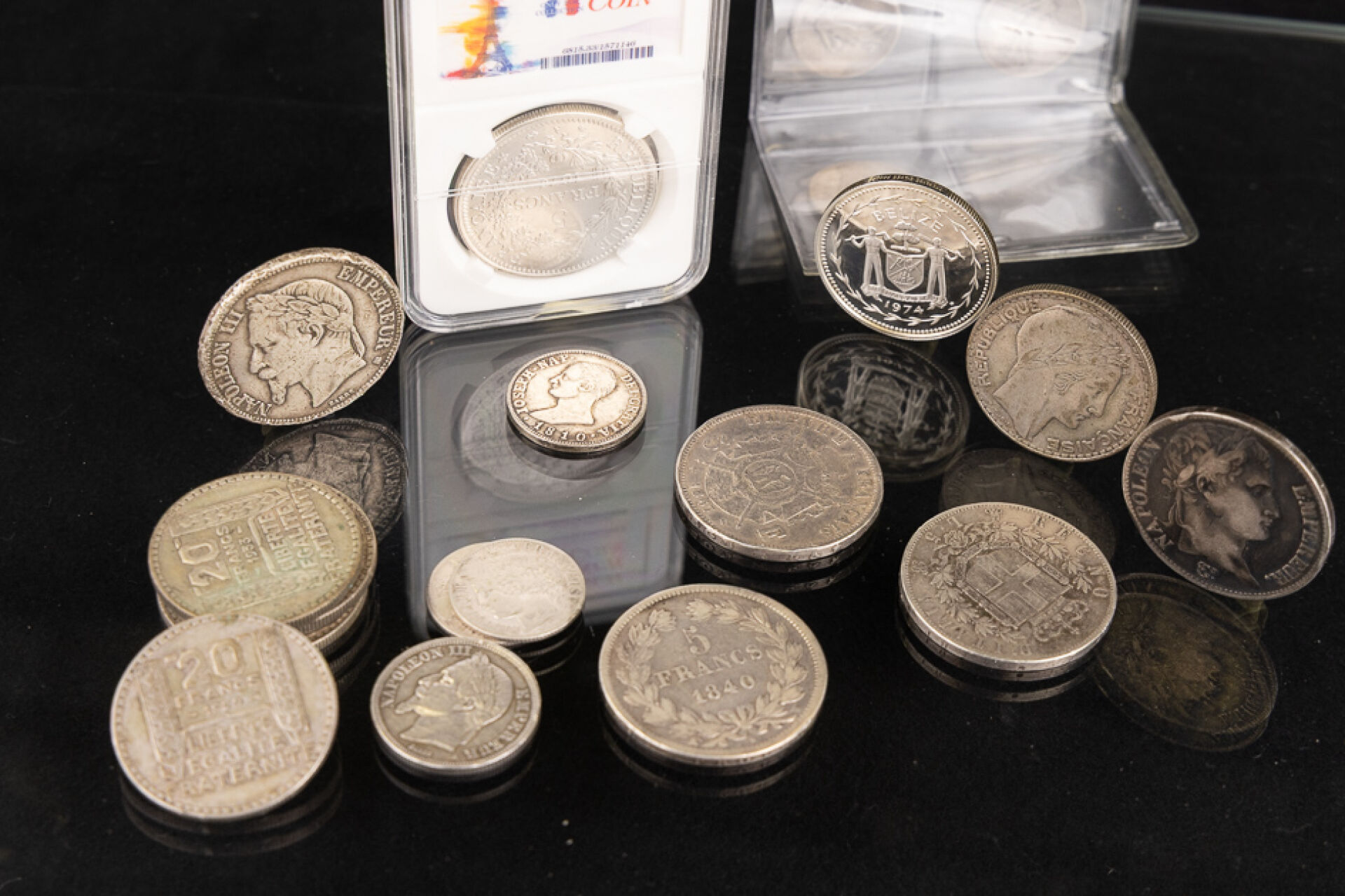 Lot comprenant : - 6 pièces de 20 francs Turin, 1929 et 1933. - 1 pièce de 5 francs Hercule, 1875. - 1 pièce de 5 francs Napoléon Empereur, 1812. - 1 pièce de 5 francs Louis-Philippe Roi des Français, 1840. - 2 pièces de 5 francs Napoléon III Empereur, 1867. - 1 pièce de 2 francs Napoléon III Empereur, 1869. - 2 pièces de 1 franc République Française, 1871 et 1872. - 3 pièces de 1 franc La Semeuse, 1899, 1902 et 1911. Poids : 275,75 gr On joint : - 1 pièce de 5 lires Vittorio Emanuele II, 1873. - 1 pièce de 4 réales Ioseph Nap Dei Gratia, 1810. - 1 pièce de 1 dollar Belize, 1974. Poids : 51,71 gr PAS DE LIVE POUR CE LOT PIECES CONSERVEES A LA BANQUE - VENDUES SUR DESIGNATION - VISIBLES SUR RENDEZ-VOUS UNIQUEMENT 48 H AVANT LA VENTE - DELIVRANCE SUR RENDEZ-VOUS UNIQUEMENT 72 HEURES A L'AVANCE