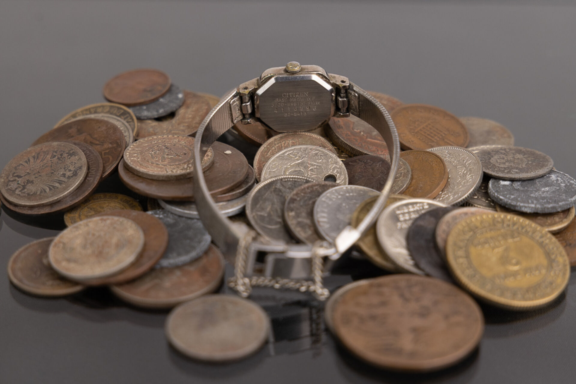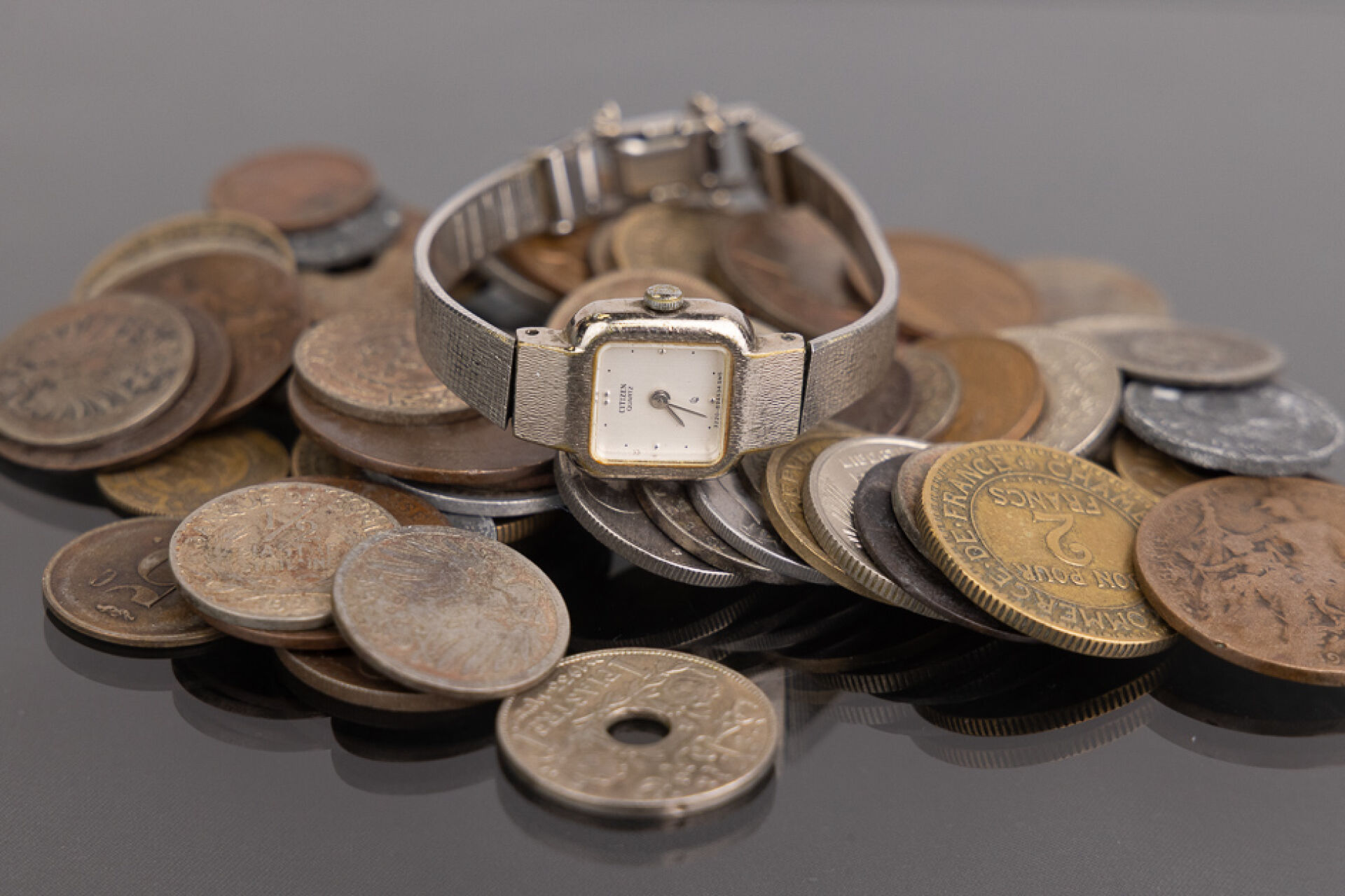 Lot comprenant une montre CITIZEN en métal argenté, mouvement quartz et un ensemble de pièces diverses. Poids des pièces : 252 gr environ Conditions de vente spécifiques : Veuillez noter que toutes les montres sont vendues en l'état. Aucune garantie n'est faite sur l'état de marche, une révision est donc conseillée. Certaines montres ont été ouvertes pour identifier le type et la qualité du mouvement, y compris les montres résistantes à l'eau, il est donc conseillé à l'acheteur de consulter un horloger pour revoir l'étanchéité de la montre. PAS DE LIVE POUR CE LOT PIECES CONSERVEES A LA BANQUE - VENDUES SUR DESIGNATION - VISIBLES SUR RENDEZ-VOUS UNIQUEMENT 48 H AVANT LA VENTE - DELIVRANCE SUR RENDEZ-VOUS UNIQUEMENT 72 HEURES A L'AVANCE