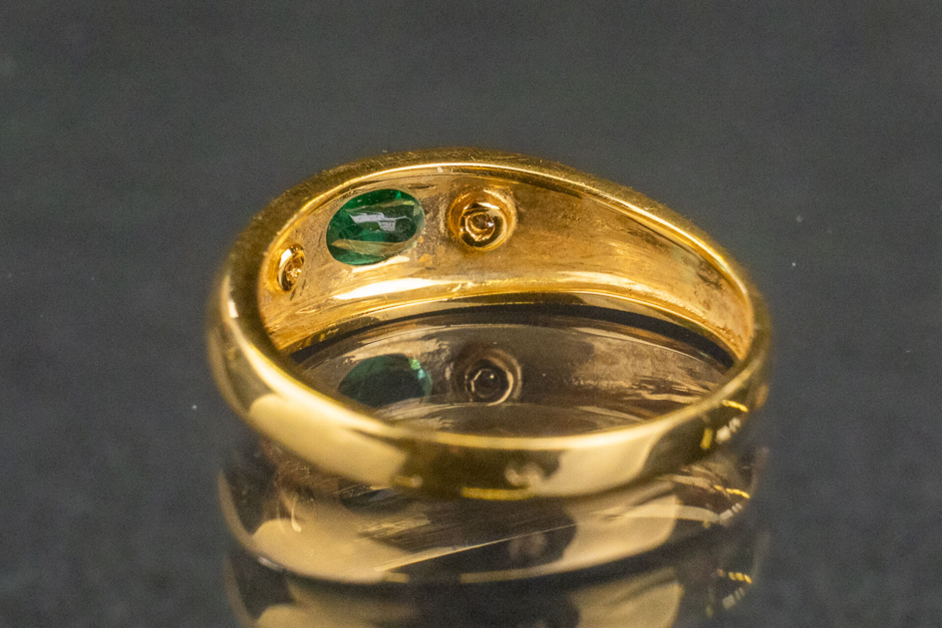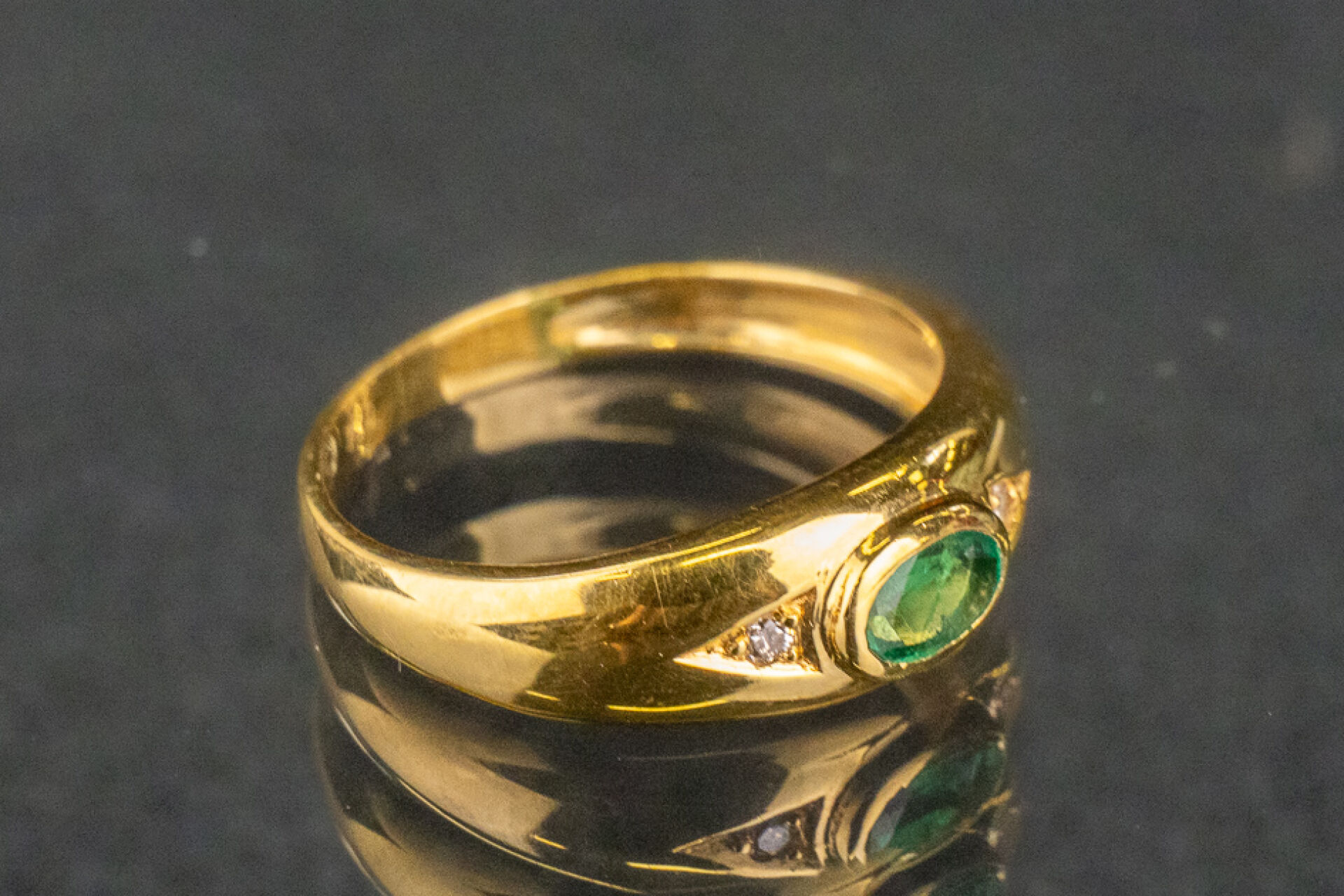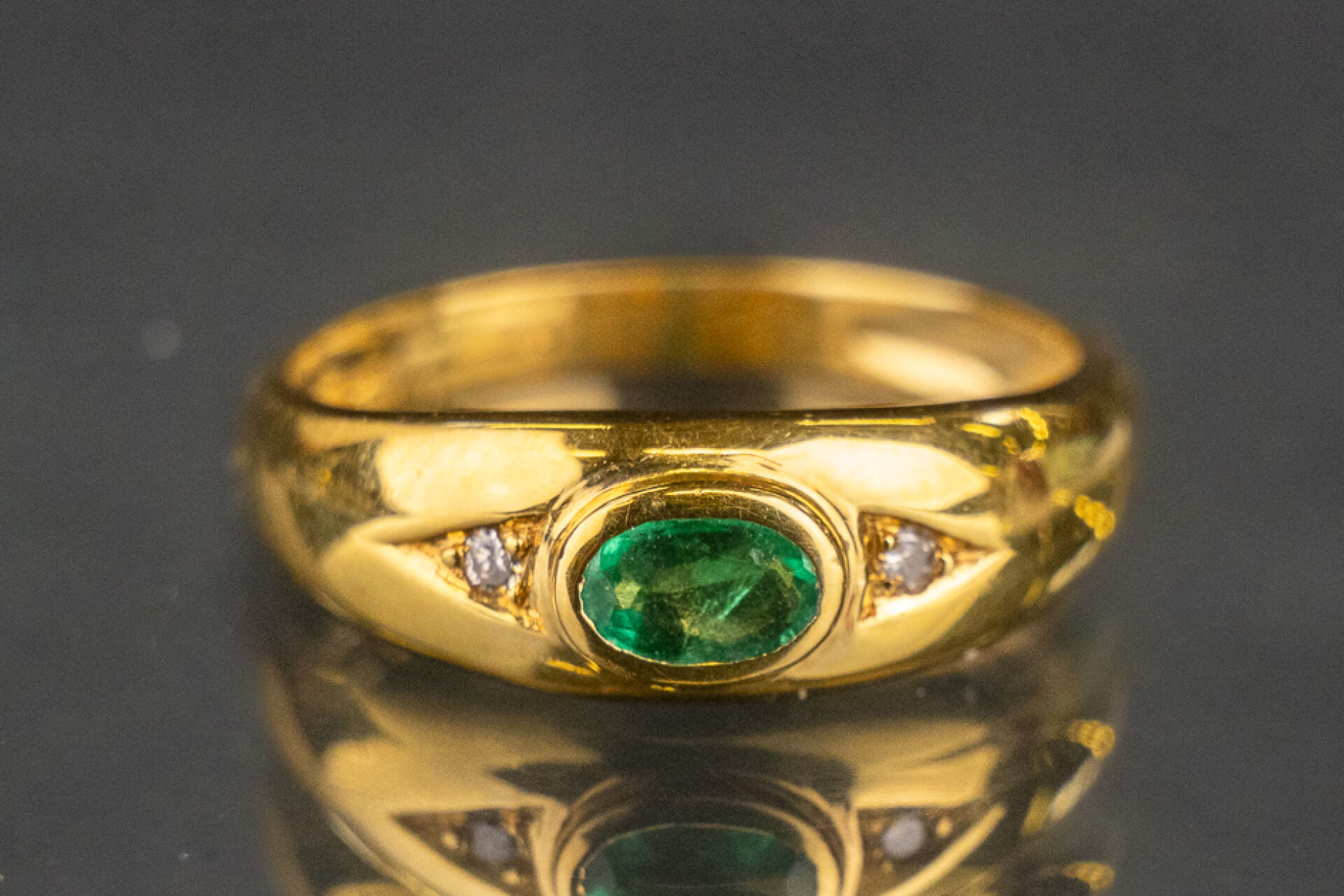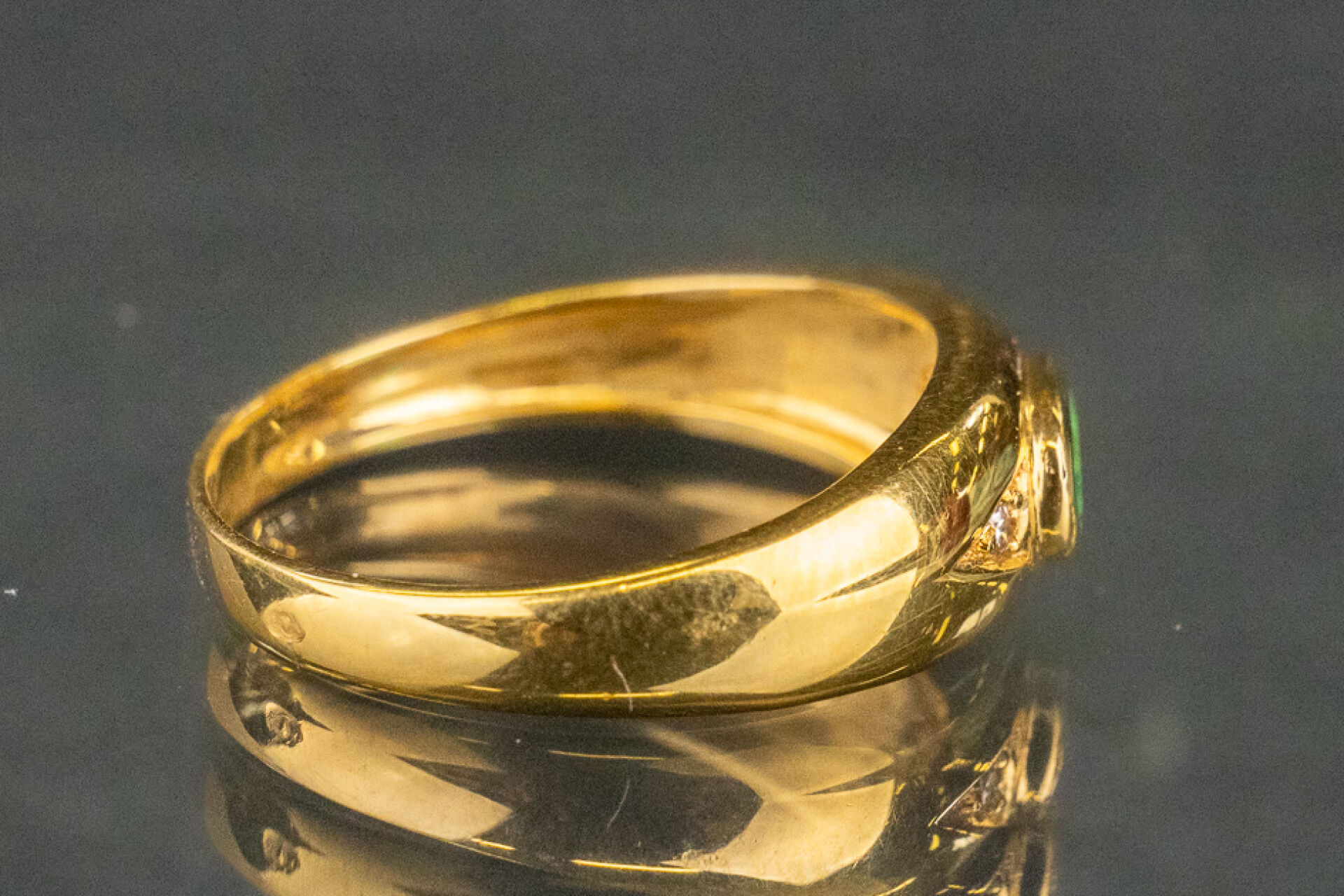 Bague en or jaune 18k (750 millièmes) sertie d'une émeraude. Poids brut : 3.1 gr - Tour de doigt 54