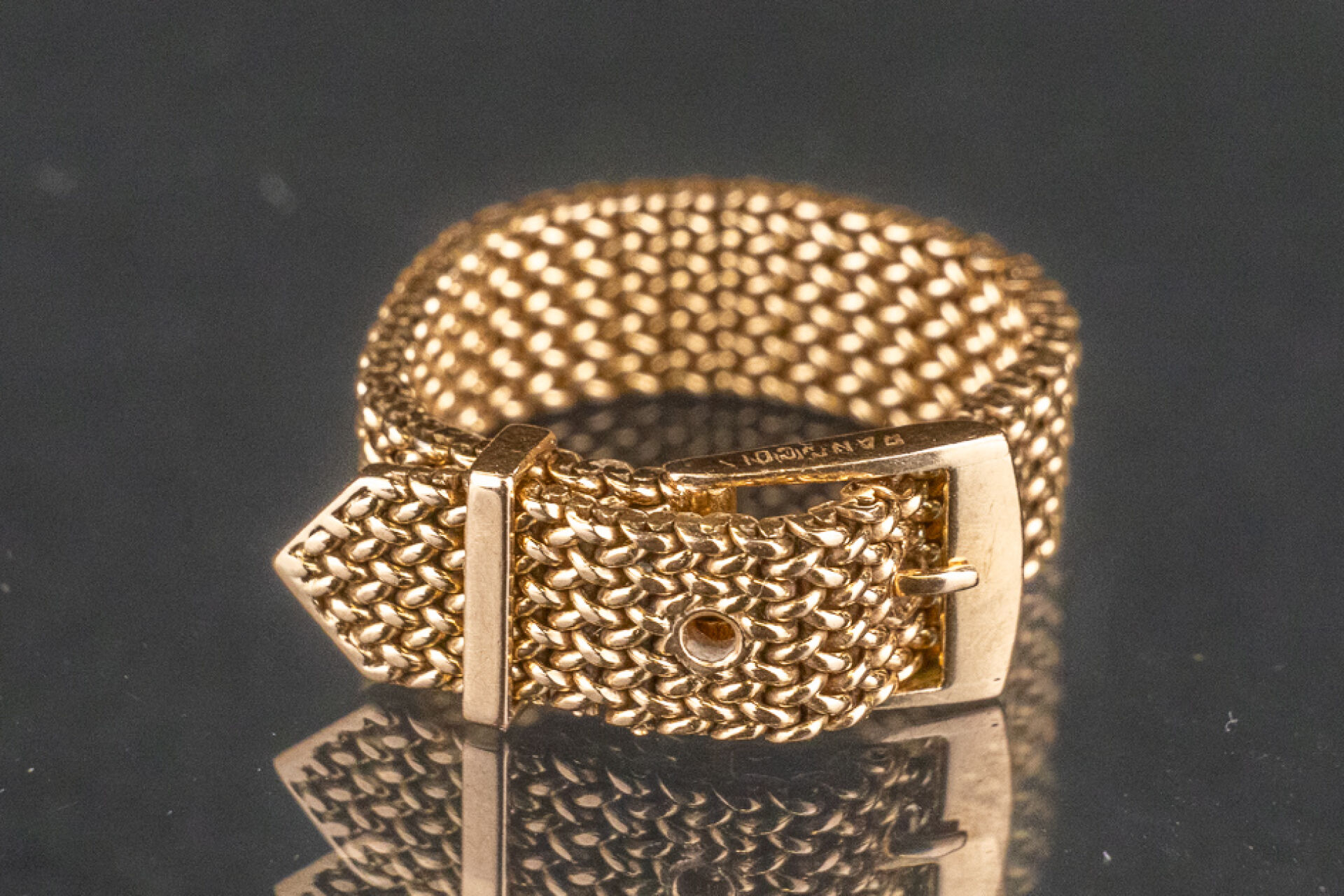 Bague ceinture en or jaune 18k (750 millièmes), tour de doigt réglable. Poids : 5.9 gr
