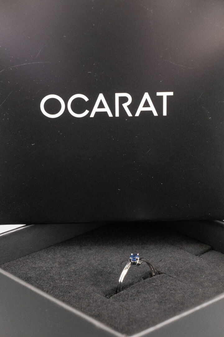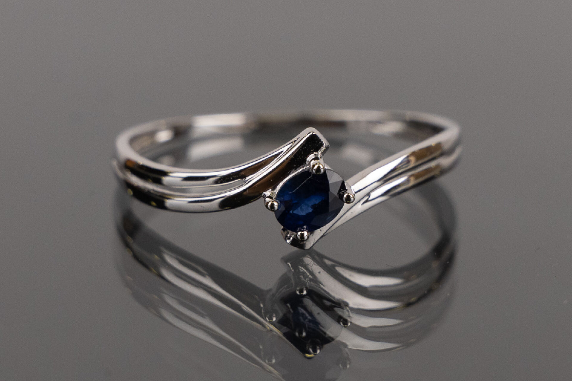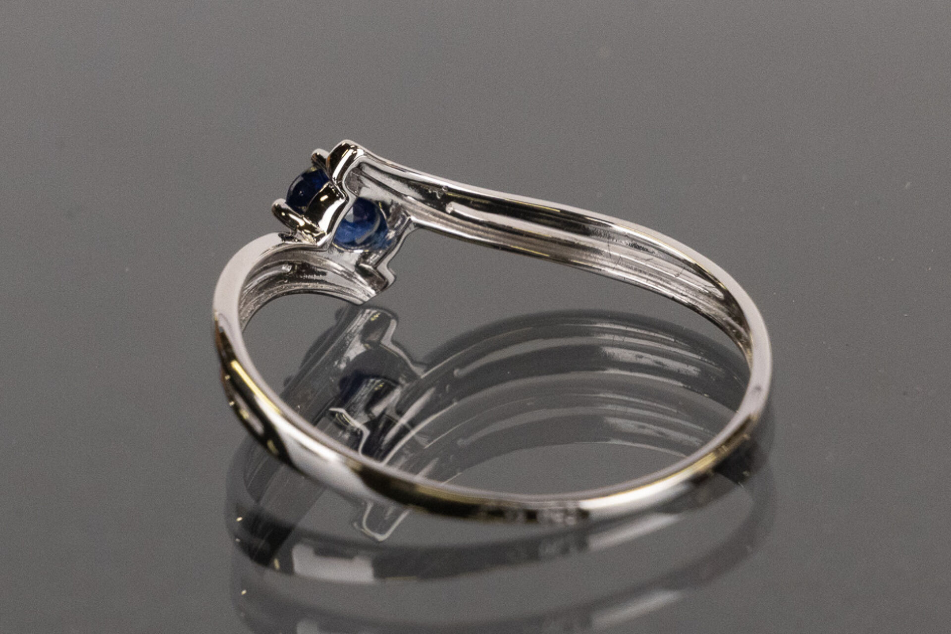 Bague en or gris 18k (750 millièmes) ornée d'un saphir, monture torsadée. Poids brut : 1,08 gr - Tour de doigt 57