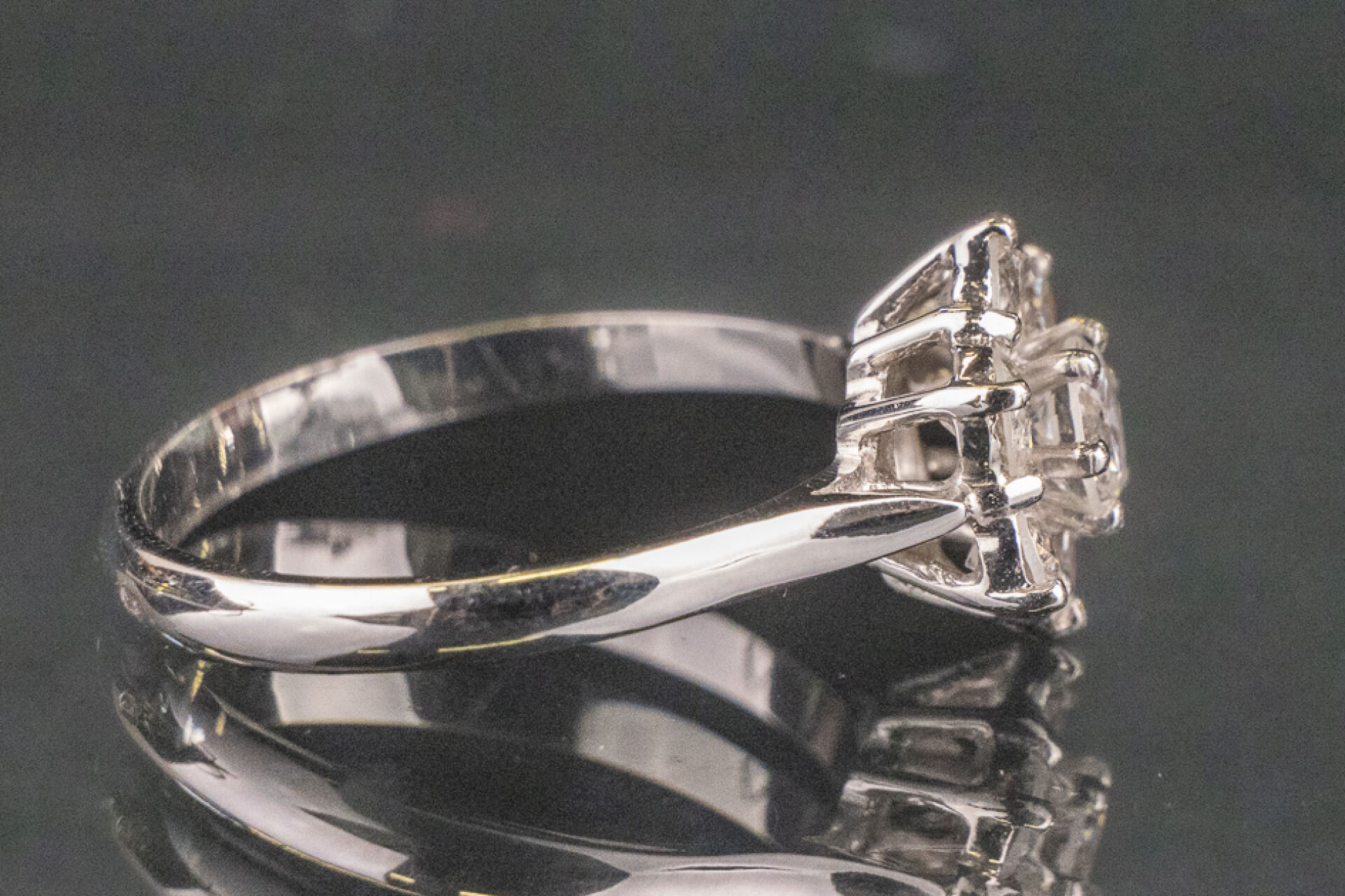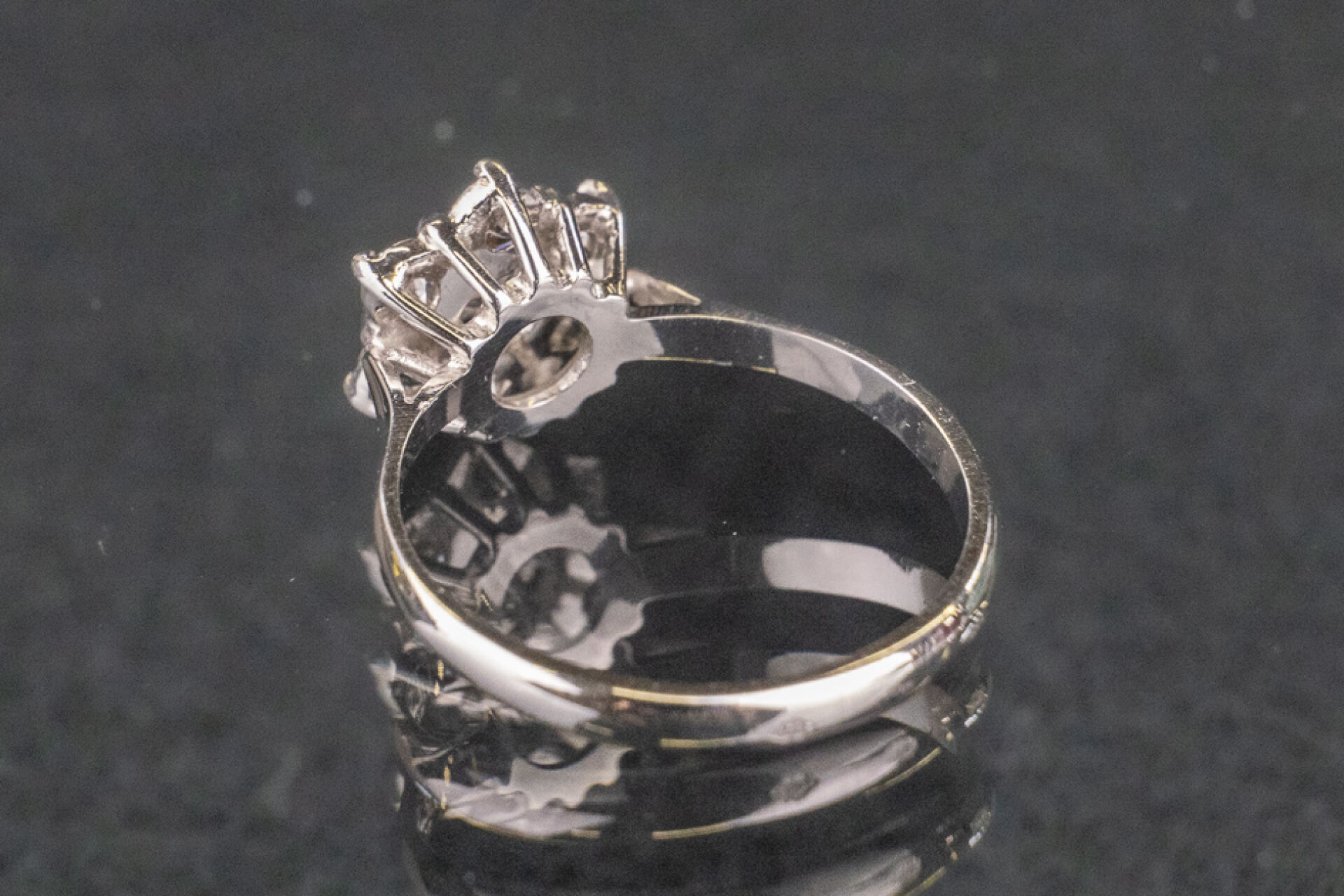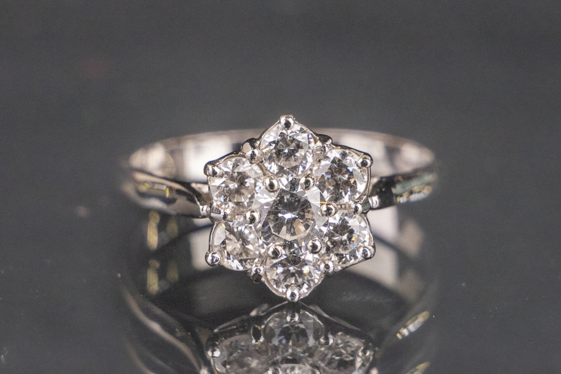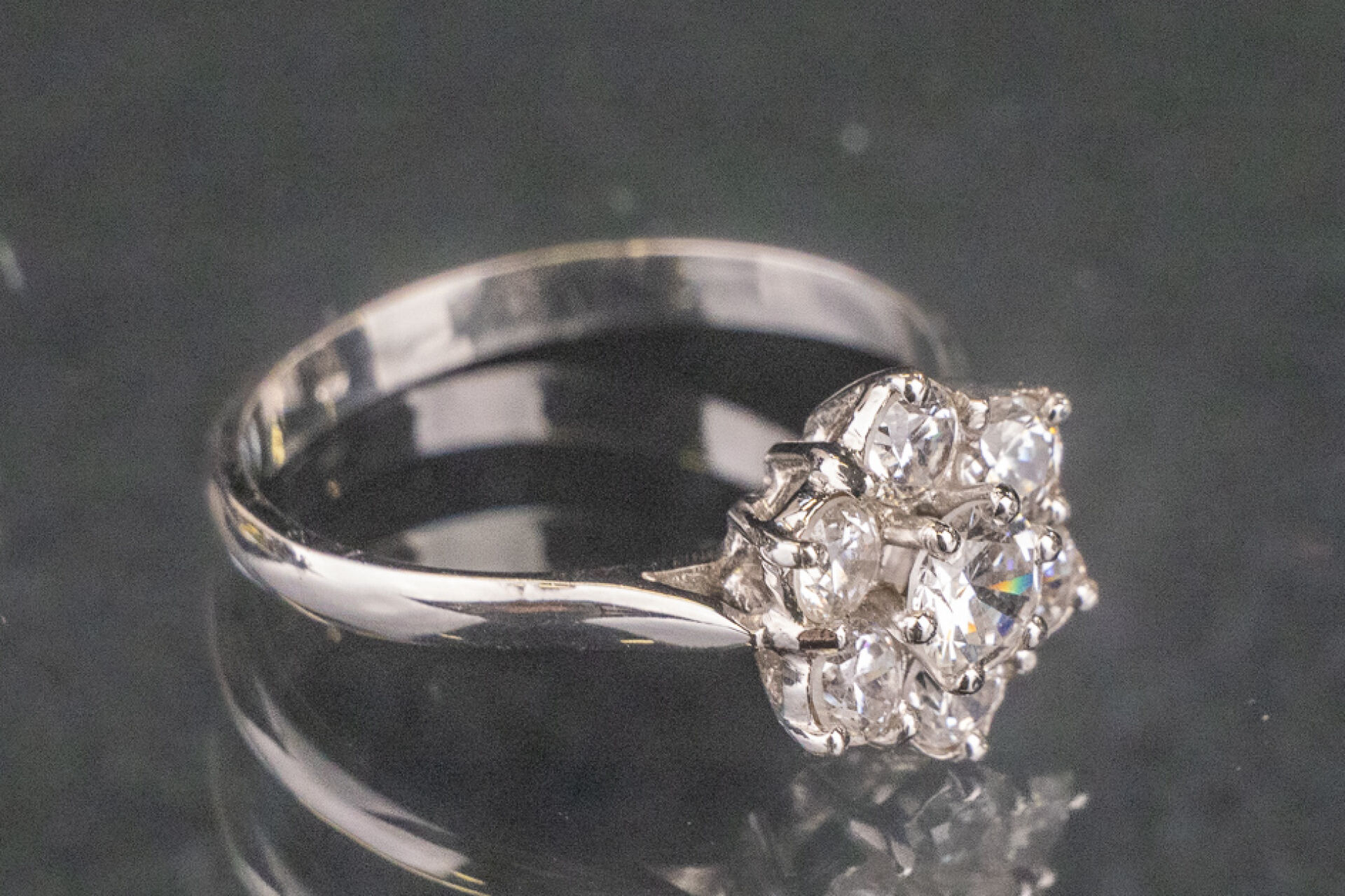 Bague marguerite en or blanc 18k (750 millièmes) sertie de zirconium. Poids : 2.8 gr - Tour de doigt 51.5