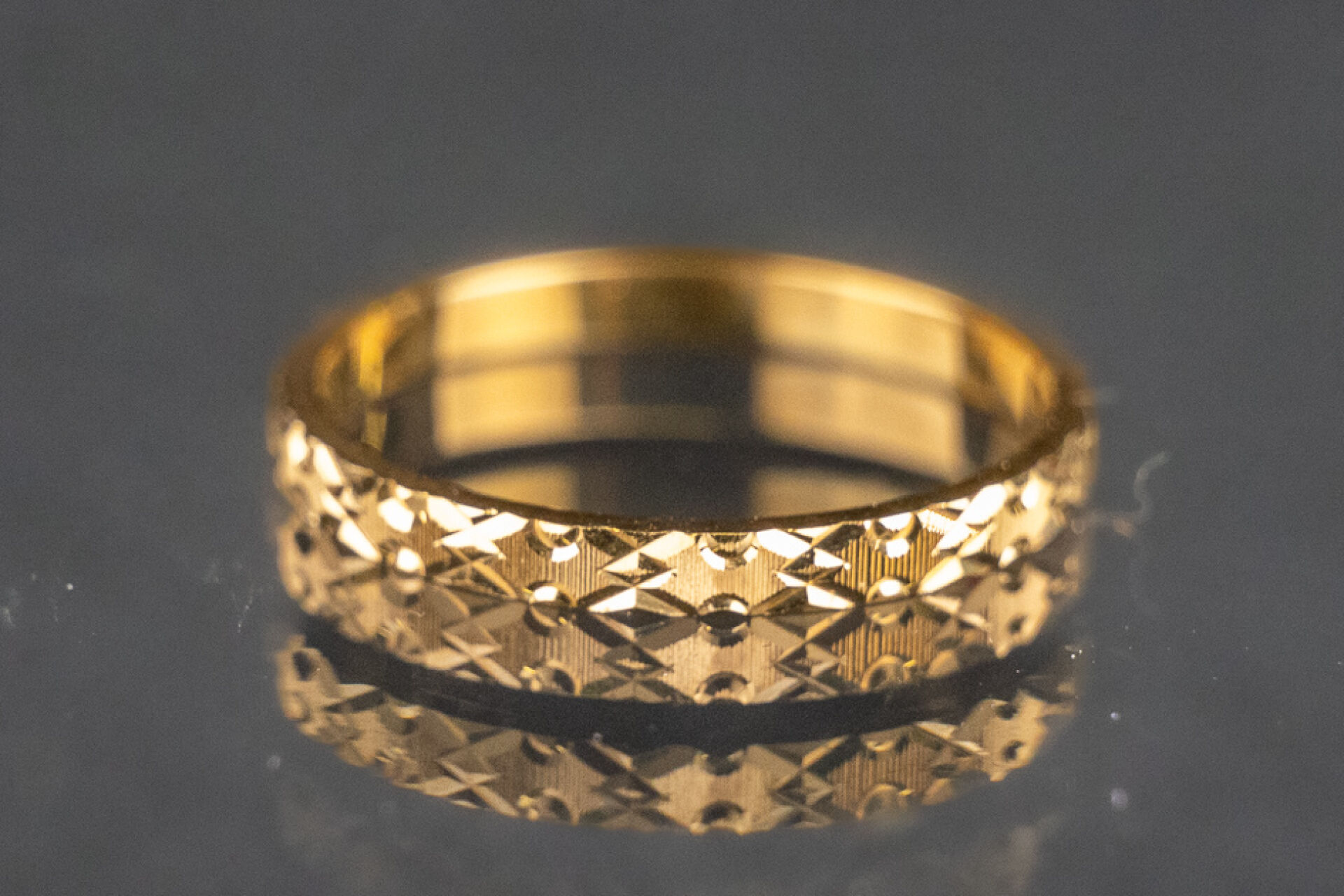 Alliance en or jaune 18k (750 millièmes) à losanges. Poids : 1.7 gr