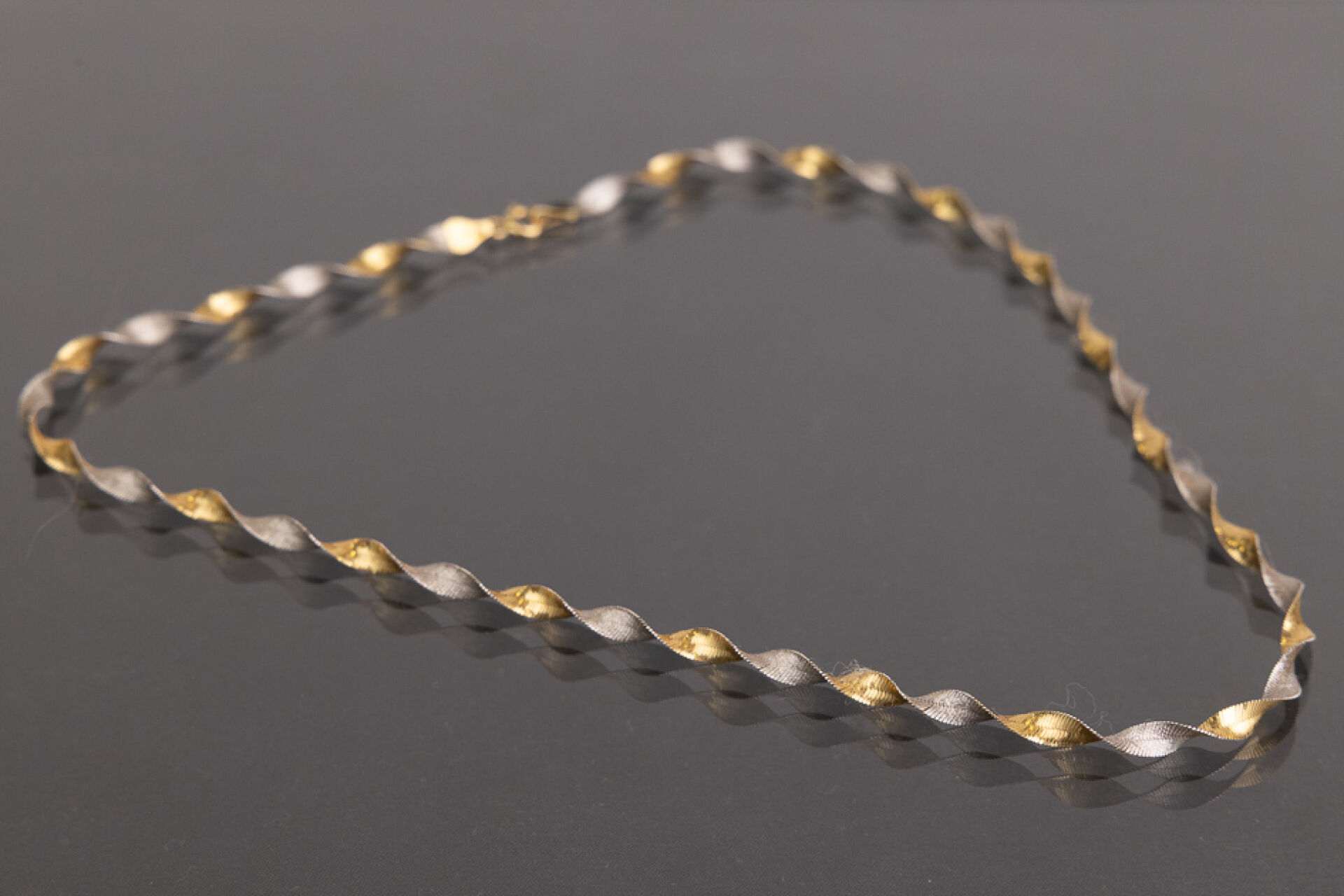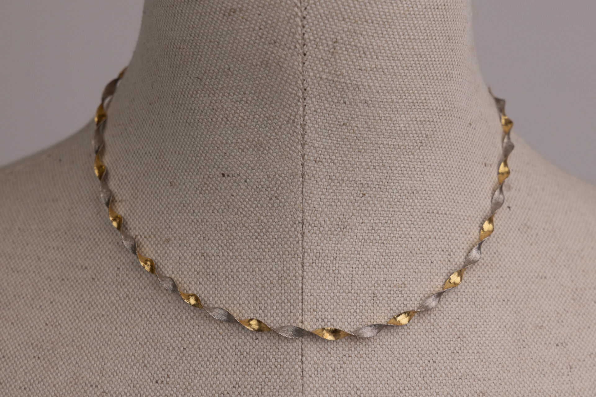 Collier en or jaune et or blanc 18k (750 millièmes) maillons torsadés. Poids : 5.34 gr - Long. : 42.5 cm