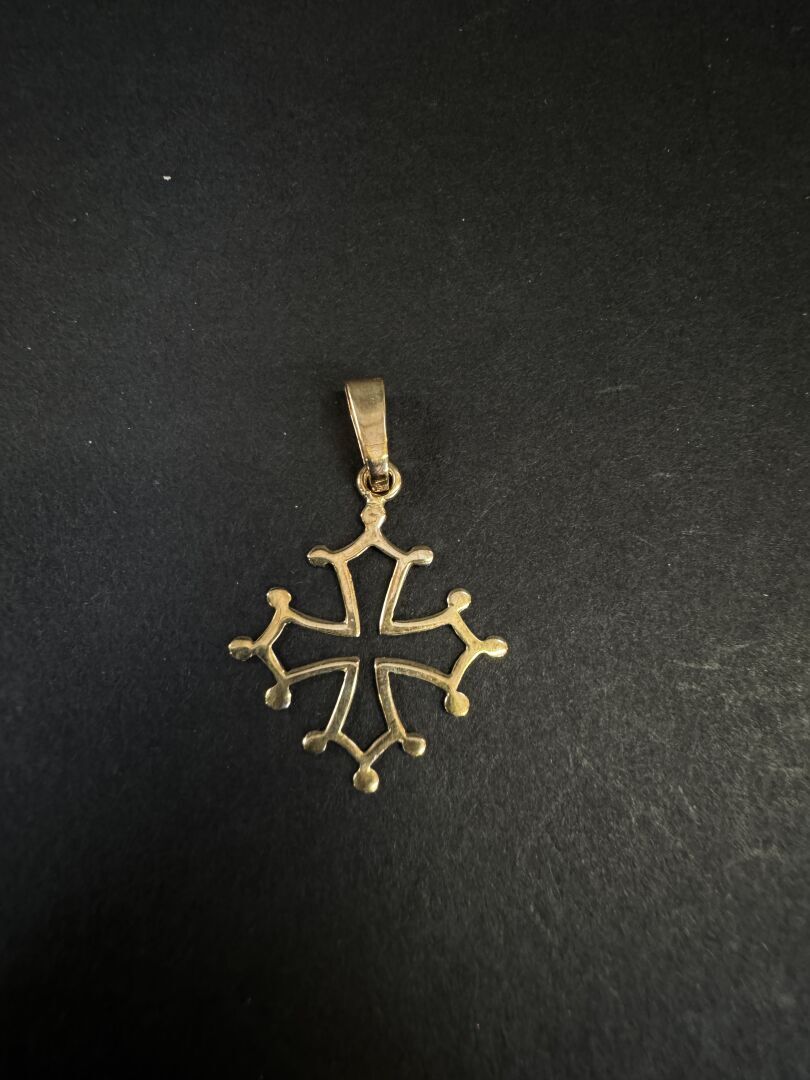 Croix occitane en or jaune 9k (375 millièmes) formant pendentif. Poids : 0.84 gr - Haut. (sans la bélière) : 2.5 cm