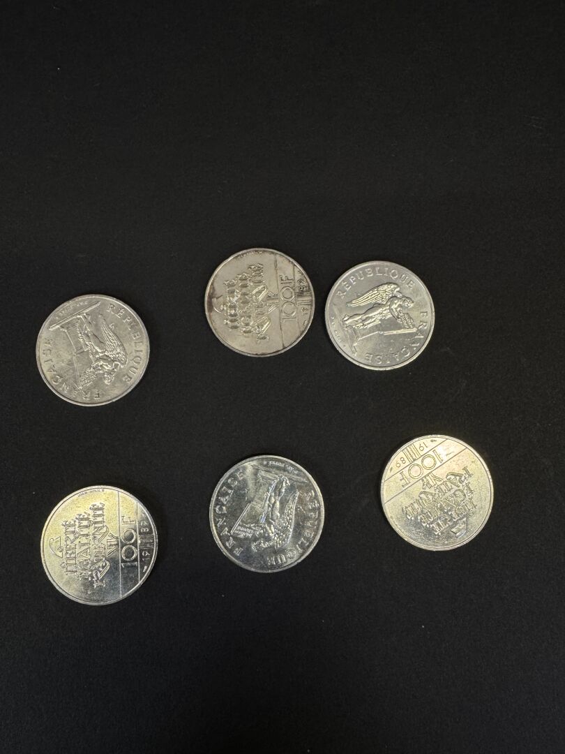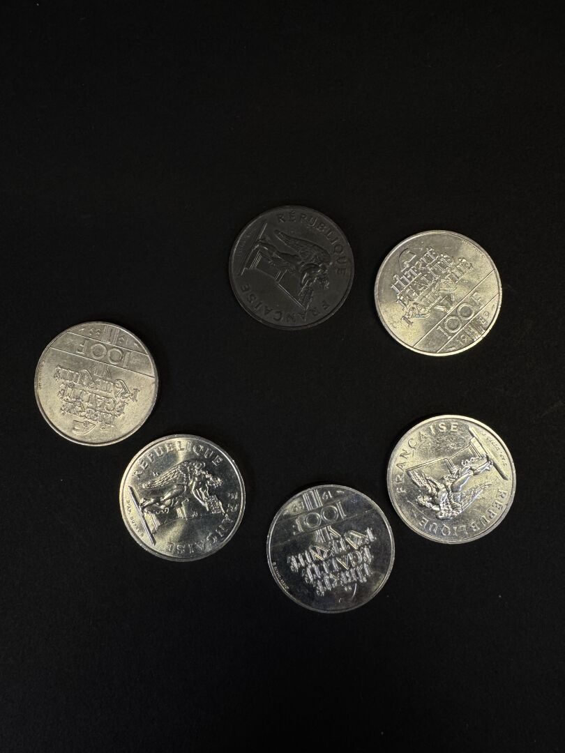 Lot de 6 pièces de 100 francs en argent, République Française, 1989. Poids : 89.88 gr PAS DE LIVE POUR CE LOT PIECES CONSERVEES A LA BANQUE - VENDUES SUR DESIGNATION - VISIBLES SUR RENDEZ-VOUS UNIQUEMENT 48 H AVANT LA VENTE - DELIVRANCE SUR RENDEZ-VOUS UNIQUEMENT 72 HEURES A L'AVANCE
