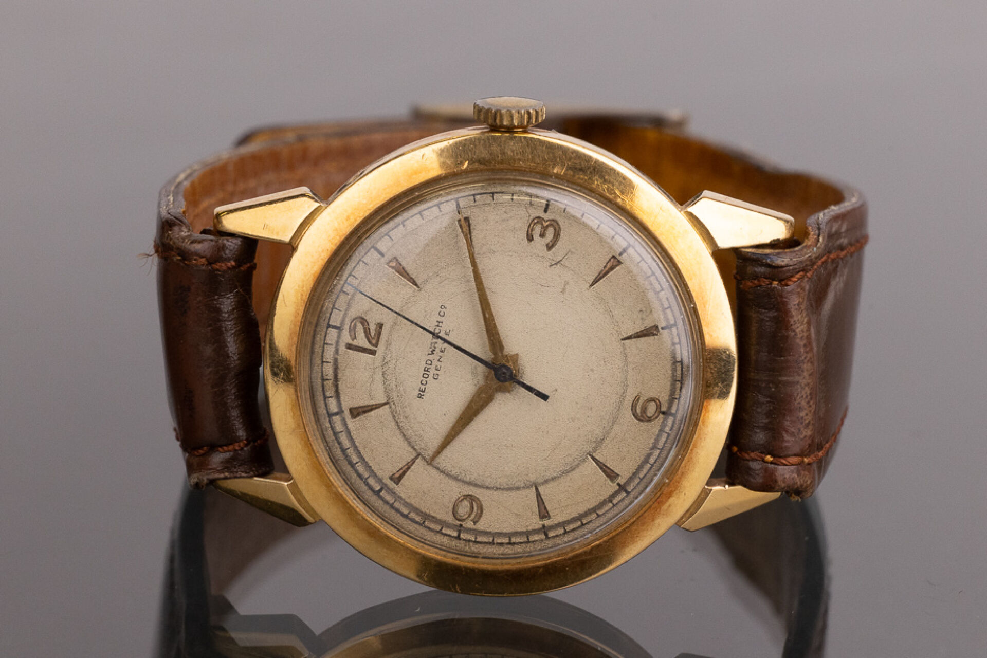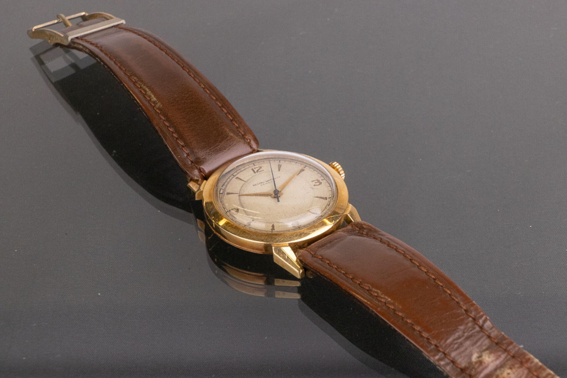 Montre homme, cadran en or jaune 18k (750 millièmes), bracelet en cuir marron, boucle ardillon. Poids brut : 34,82 gr - Diam. : 3.5 cm En l'état Montre ne fonctionnant pas lors de l'expertise. Conditions de vente spécifiques : Veuillez noter que toutes les montres sont vendues en l'état. Aucune garantie n'est faite sur l'état de marche, une révision est donc conseillée. Certaines montres ont été ouvertes pour identifier le type et la qualité du mouvement, y compris les montres résistantes à l'eau, il est donc conseillé à l'acheteur de consulter un horloger pour revoir l'étanchéité de la montre.