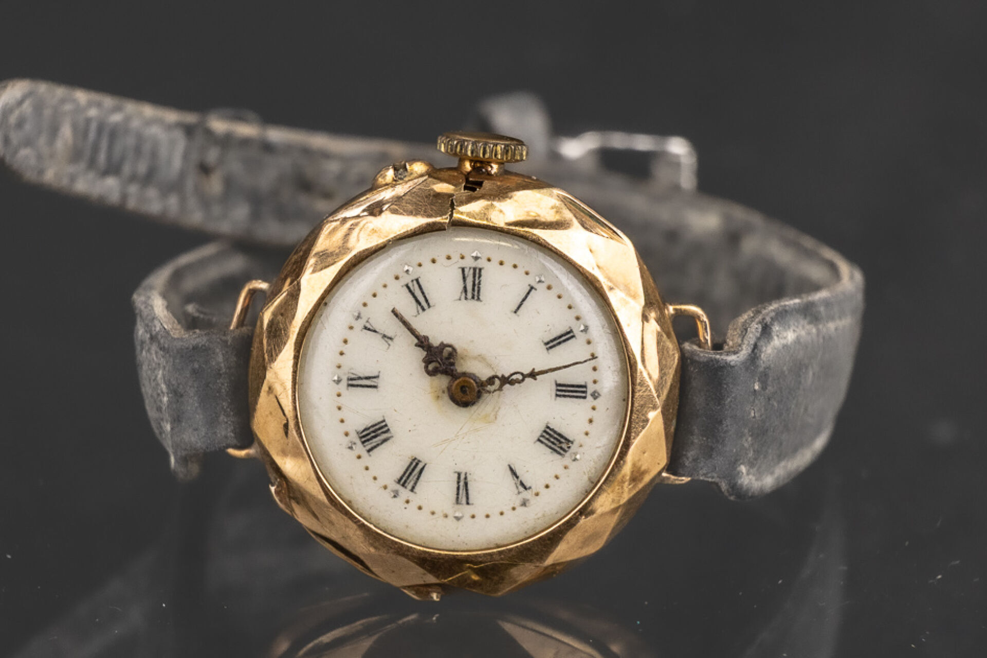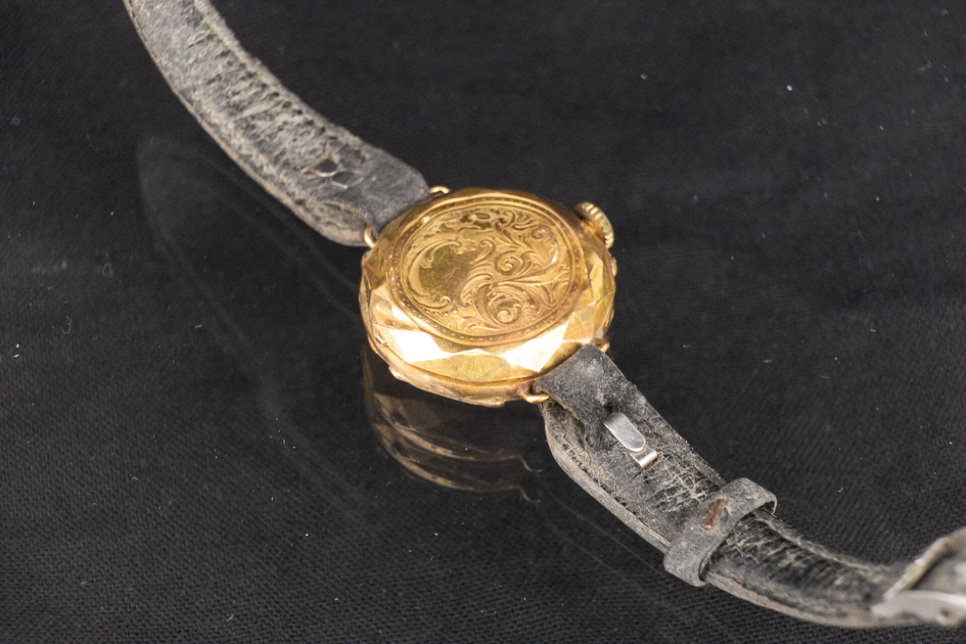 Montre de gousset en or jaune 18k (750 millièmes) transformée, bracelet en cuir noir. Poids brut : 19.35 gr Usures et accidents Conditions de vente spécifiques : Veuillez noter que toutes les montres sont vendues en l'état. Aucune garantie n'est faite sur l'état de marche, une révision est donc conseillée. Certaines montres ont été ouvertes pour identifier le type et la qualité du mouvement, y compris les montres résistantes à l'eau, il est donc conseillé à l'acheteur de consulter un horloger pour revoir l'étanchéité de la montre.
