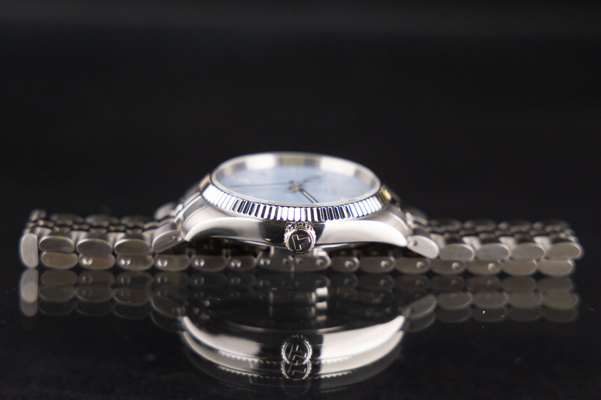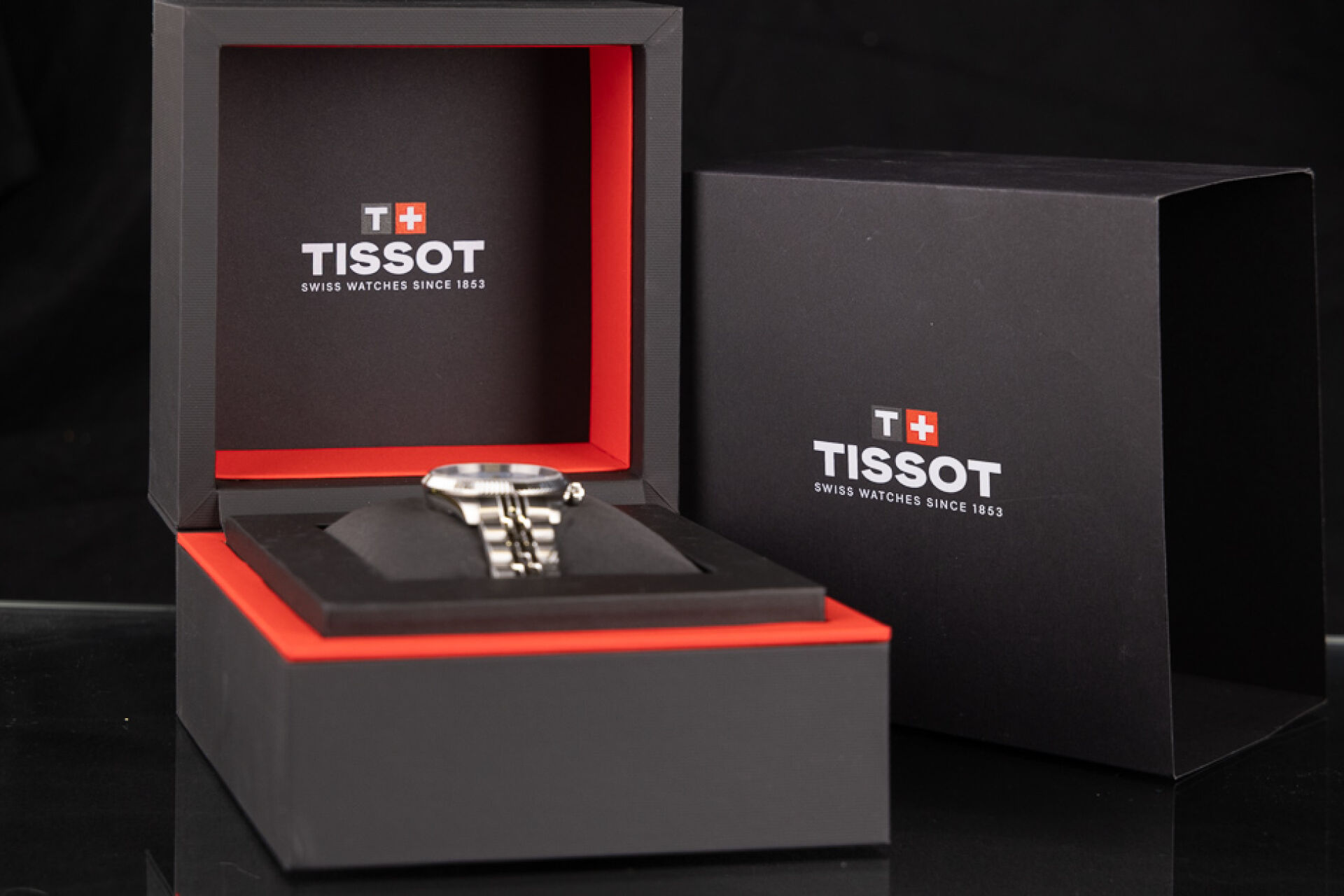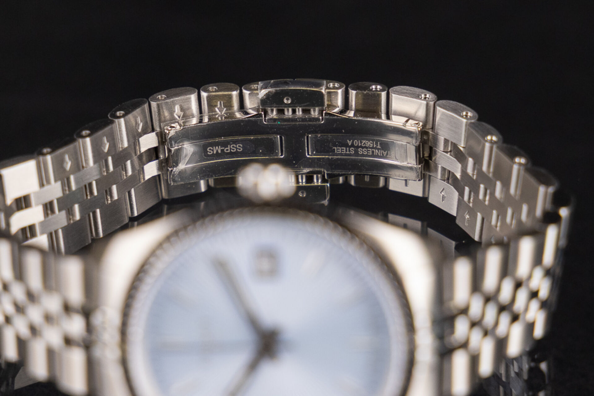 TISSOT - Montre femme, boitier circulaire en acier, cadran à fond bleu ciel guilloché, index bâtons, guichet date à 3h, bracelet acier à boucle déployante, mouvement à quartz. Boite. Diam. : 3,3 cm Montre fonctionnant lors de l'expertise, révision conseillée. Conditions de vente spécifiques : Veuillez noter que toutes les montres sont vendues en l'état. Aucune garantie n'est faite sur l'état de marche, une révision est donc conseillée. Certaines montres ont été ouvertes pour identifier le type et la qualité du mouvement, y compris les montres résistantes à l'eau, il est donc conseillé à l'acheteur de consulter un horloger pour revoir l'étanchéité de la montre.
