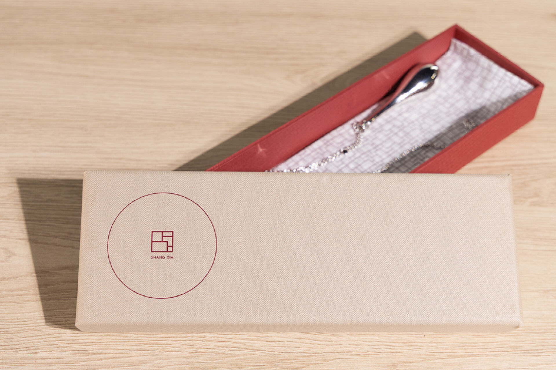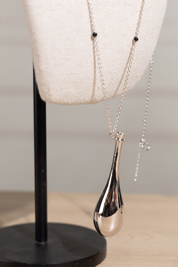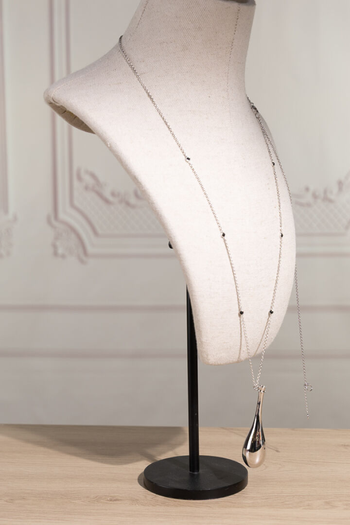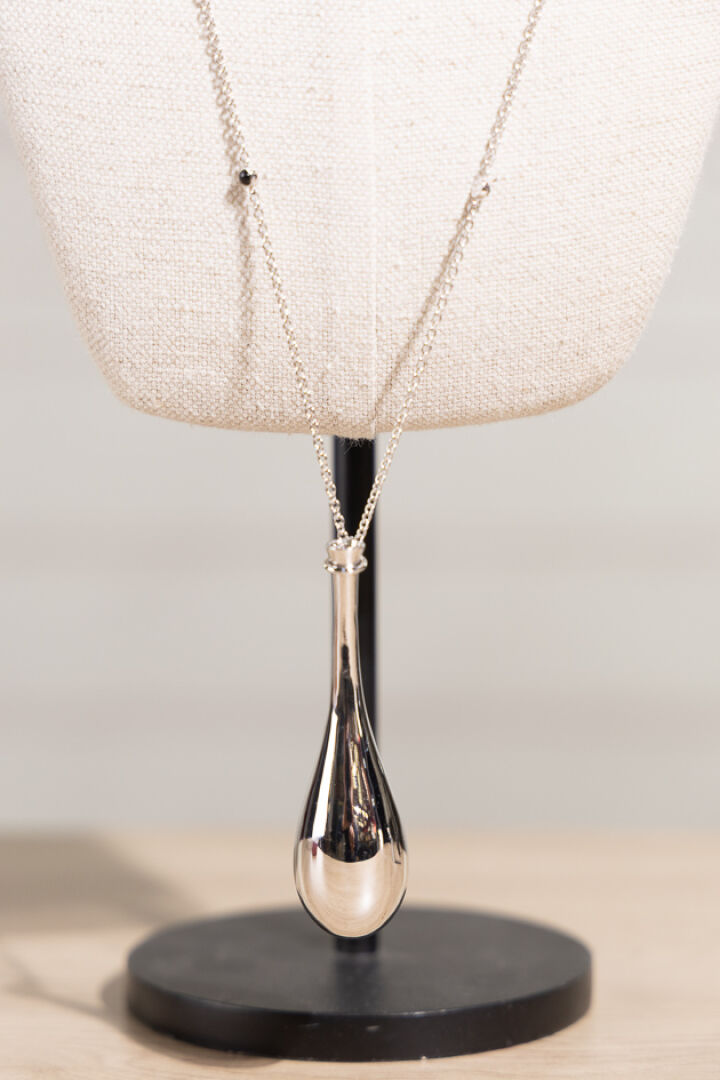 SHANG SIA - Pendentif goutte en argent 925 millièmes retenu par une chaine. Poids brut : 31,10 gr - Haut du pendentif : 7,5 cm Très bon état