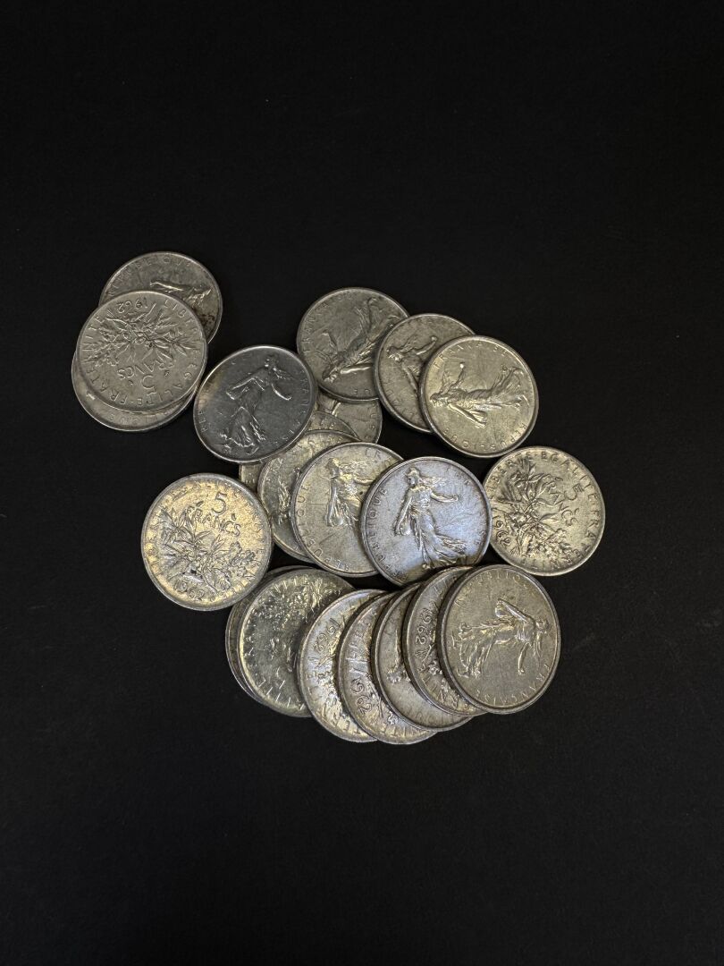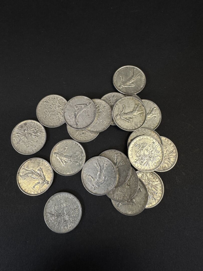 Lot de 21 pièces de 5 francs en argent, la Semeuse, 1962. Poids : 251.77 gr PAS DE LIVE POUR CE LOT PIECES CONSERVEES A LA BANQUE - VENDUES SUR DESIGNATION - VISIBLES SUR RENDEZ-VOUS UNIQUEMENT 48 H AVANT LA VENTE - DELIVRANCE SUR RENDEZ-VOUS UNIQUEMENT 72 HEURES A L'AVANCE