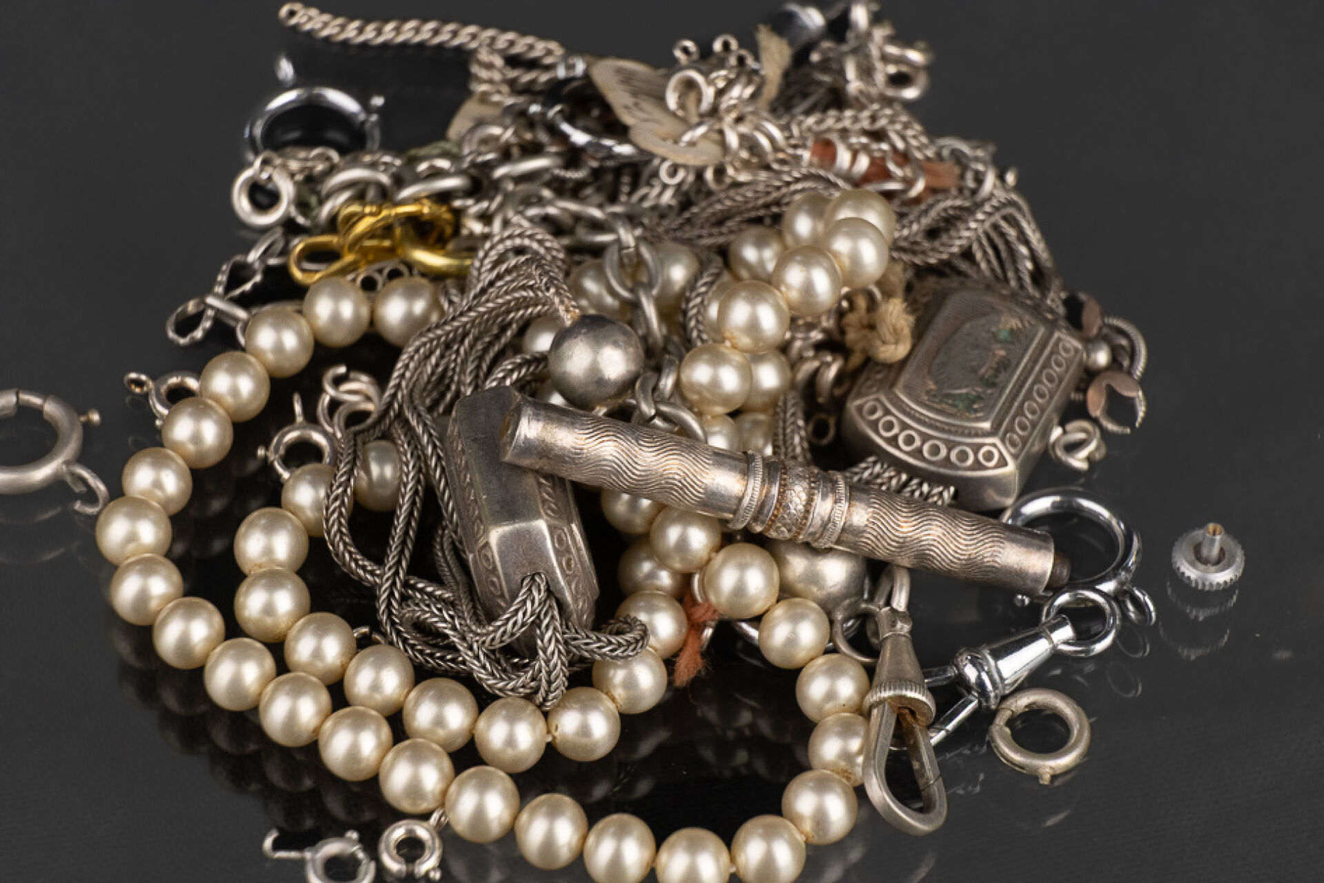 Ensemble de chaines, colliers, fermoirs, la majorité en argent 925 millièmes. Poids brut : 74.18 gr