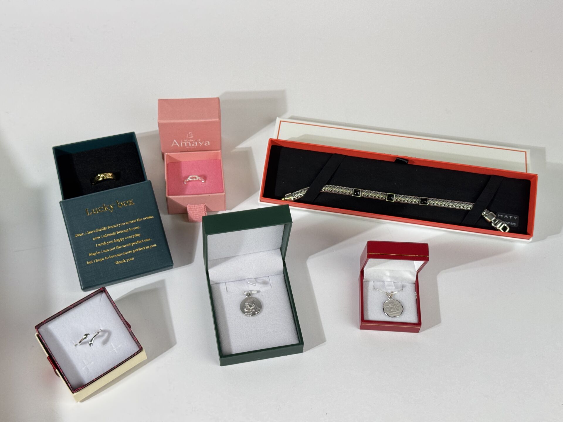 Fort ensemble de bijoux en argent 925 millièmes dont bagues, boucles d'oreilles, bracelets, colliers, pendentifs, gourmettes,… Diverses marques dont MATY, AMAYA, LUCKY BOX,... Poids brut : 324,18 gr environ