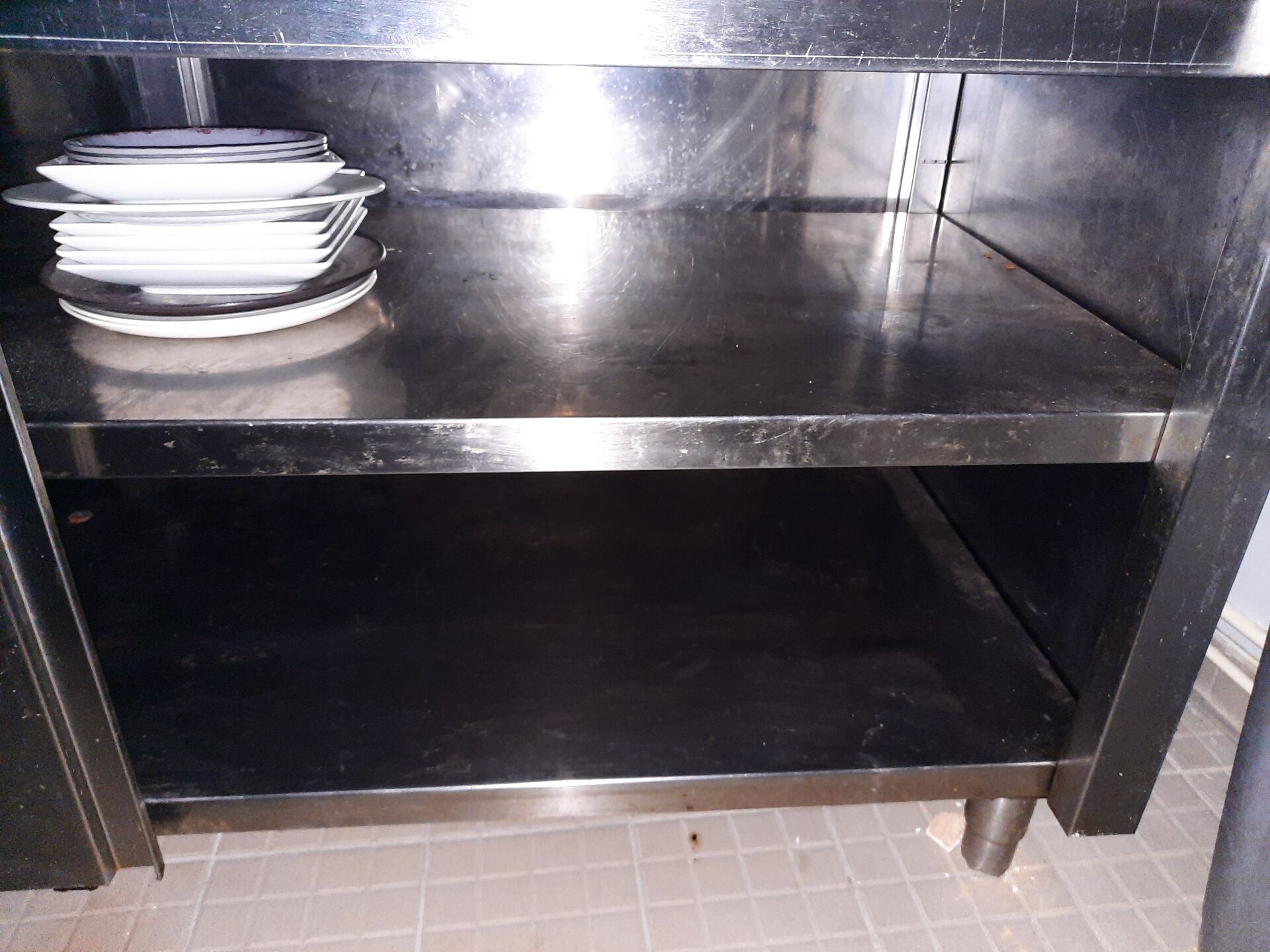 Desserte MBM, en inox, ouvrant à 2 portes coulissantes 180x70x85 cm