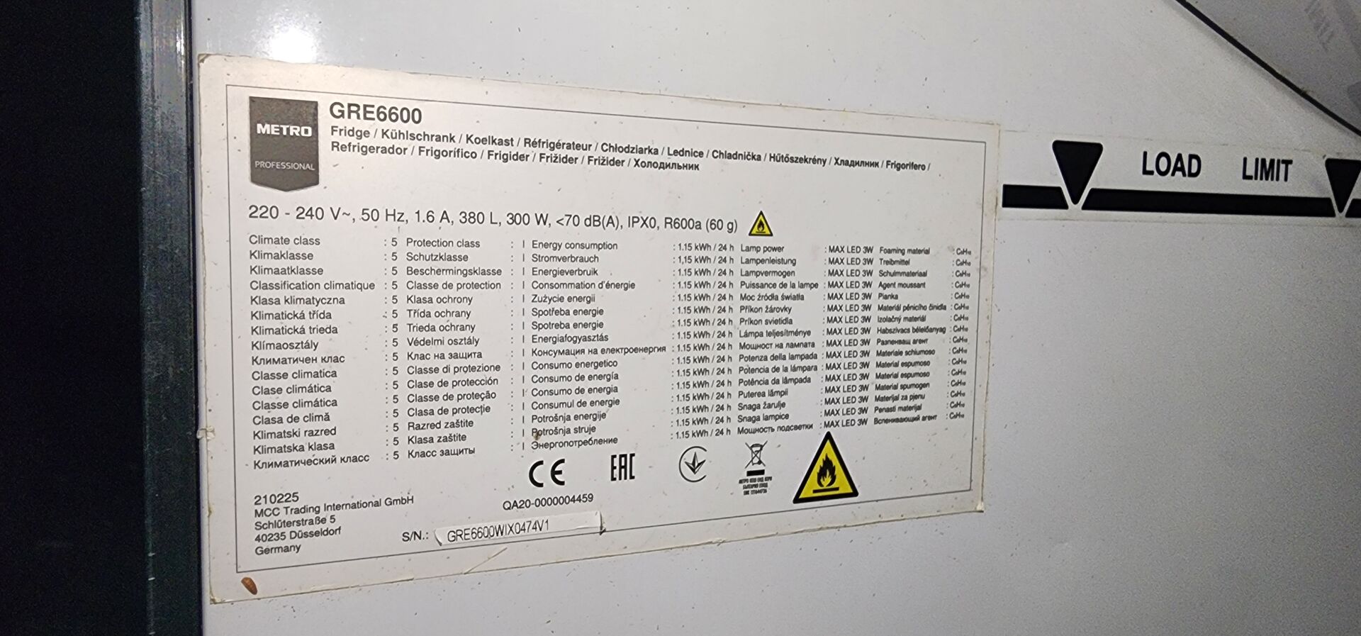 1 armoire réfrigérée positive METRO GRE6600 380 L 78 x 73 x 193 cm