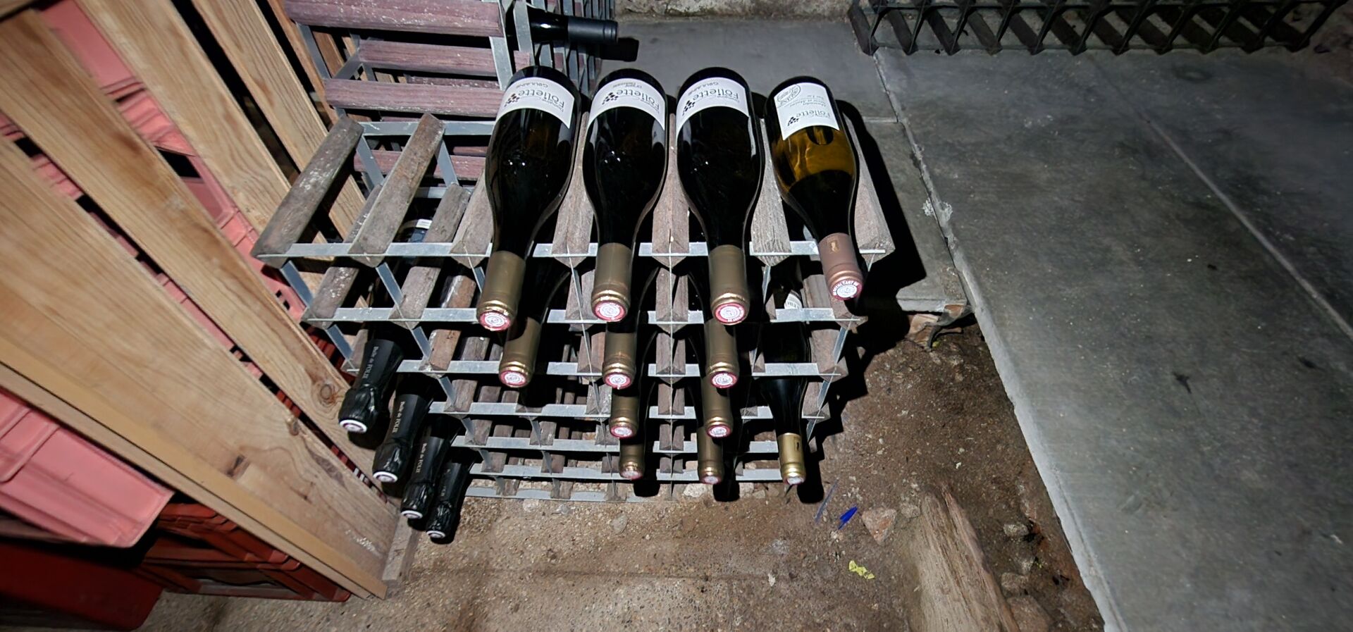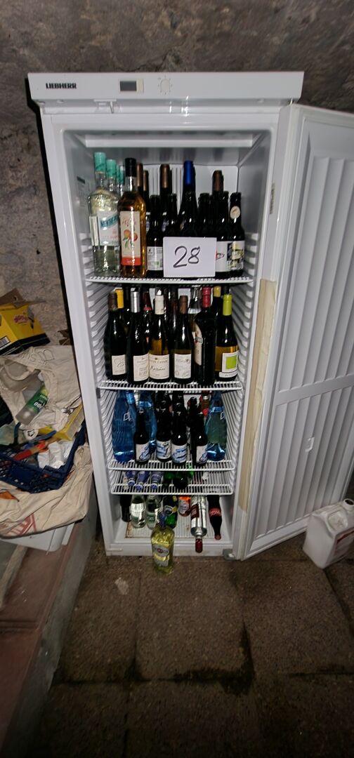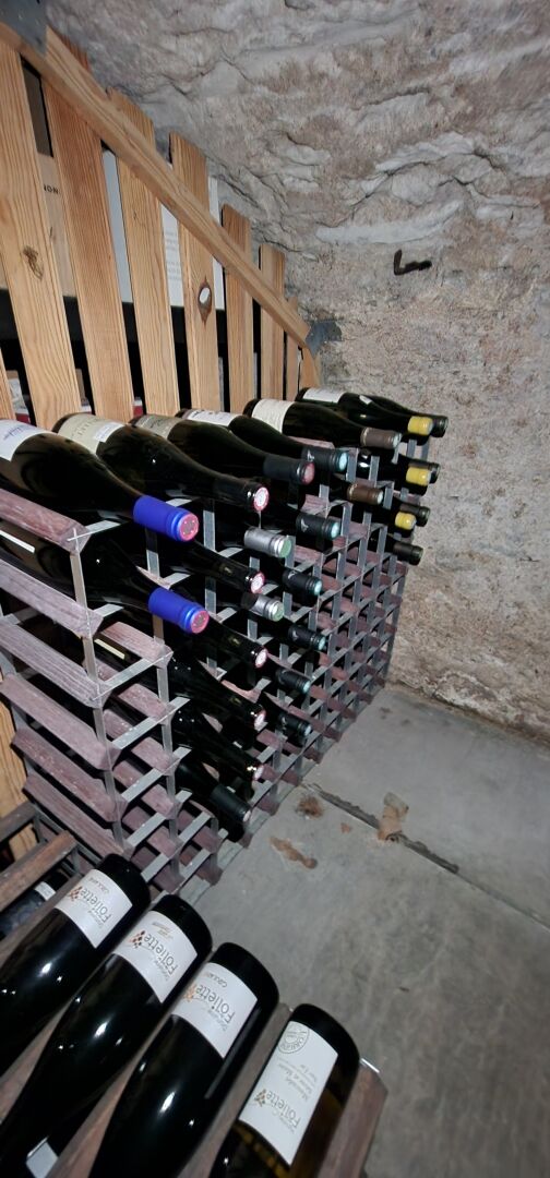 Stock d'environ 120 bouteilles et demi-bouteilles de vin dont Chardonnay, Quincy, Gondard Perrin, Marsanne, Saumur, Chinon, Chateauneuf du Pape, etc, digestifs, bière
