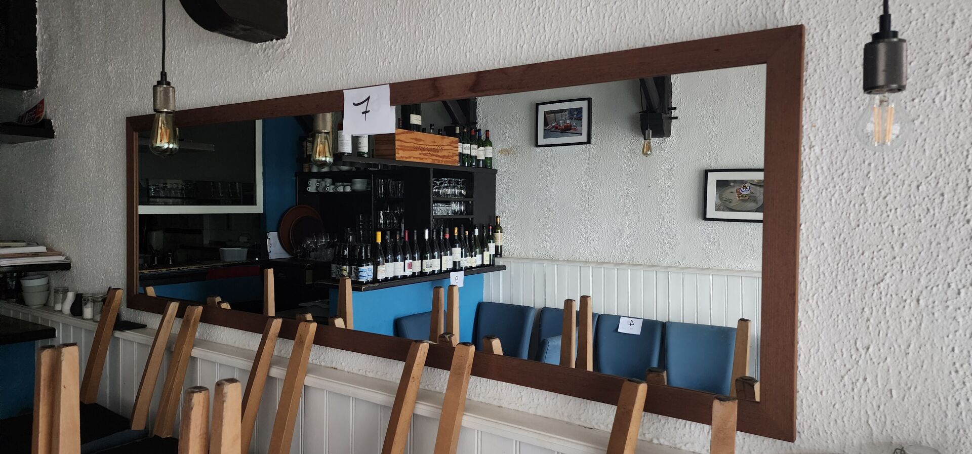 1 miroir rectangulaire cadre bois 204 X 63 cm 1 miroir rectangulaire cadre bois 210 X 82 cm 1 lot de décoration murale environ 8 cadres