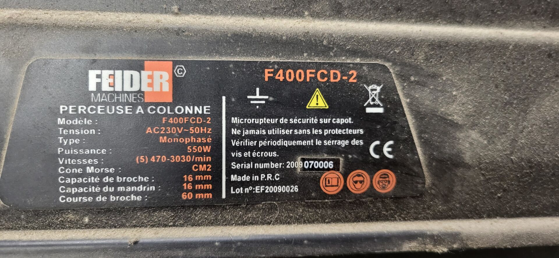 1 perceuse à colonne d'établi FEIDER F400 FCD-2