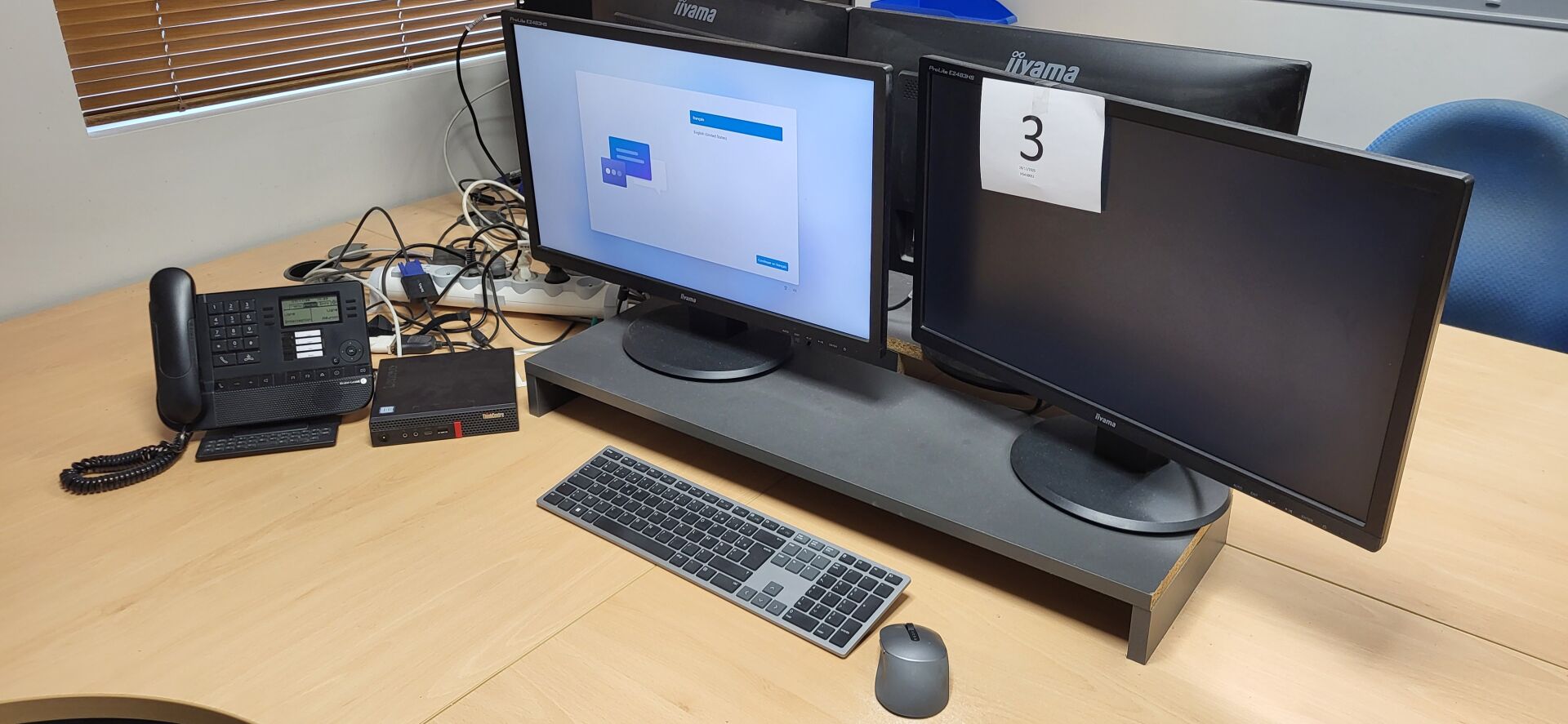 Configuration informatique, comprenant : 1 mini unité centrale LENOVO ThinkCentre M720q Core i3 - S/N : S4KT9450, 2 écrans IIYAMA Prolite E2483HS, 1 clavier, 1 souris 1 téléphone ALCATEL-LUCENT