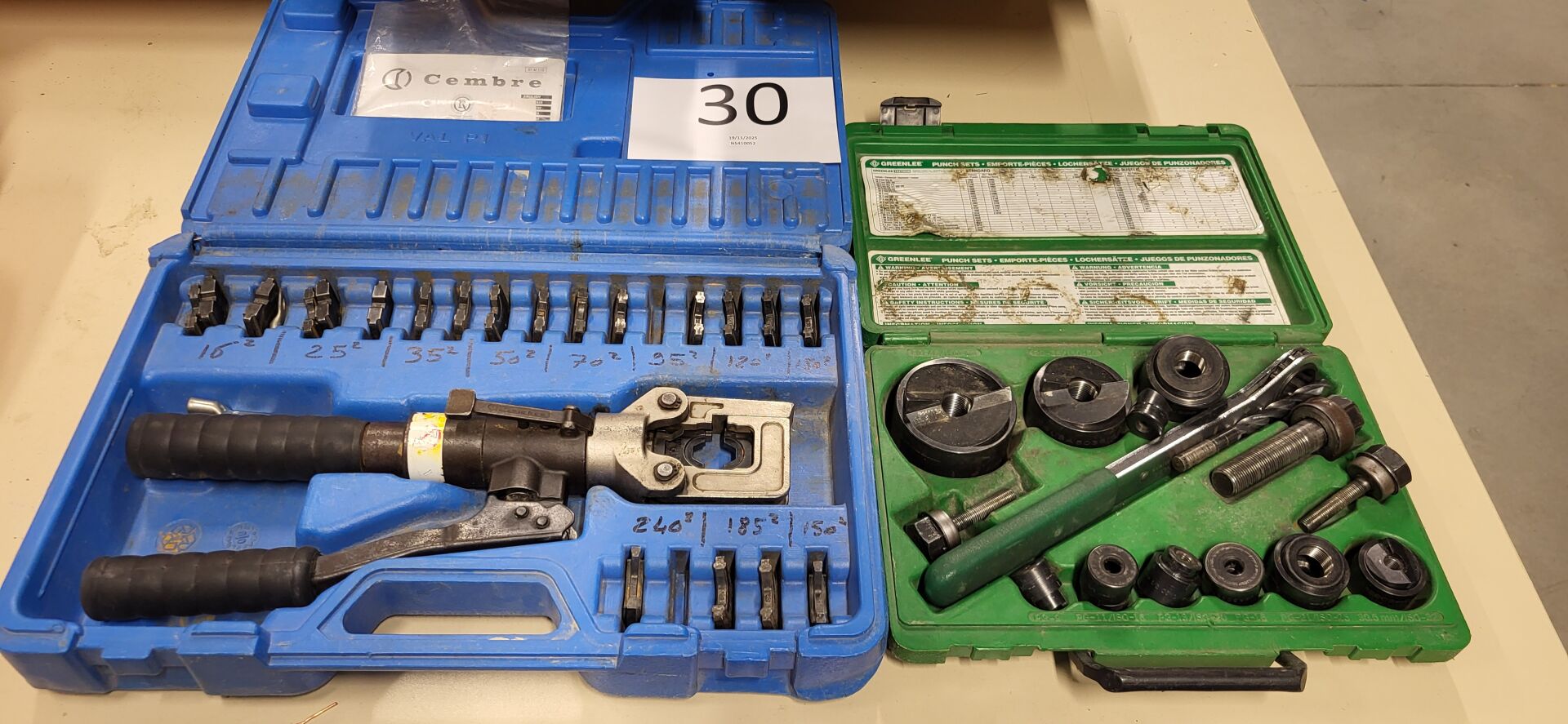 1 coffret emporte pièce GREENLEE avec clef à cliquet 1 sertisseuse hydraulique manuelle CEMBRE dans son coffret incomplet