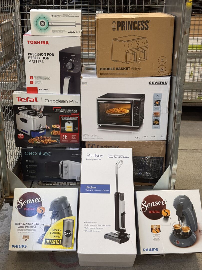 LOT DE PETITS ELECTROMENAGERS DONT FOUR, AIRFRYER, MACHINE A CAFE (expédition sur devis) Lot issu de colis non réclamés : état de fonctionnement non garanti.