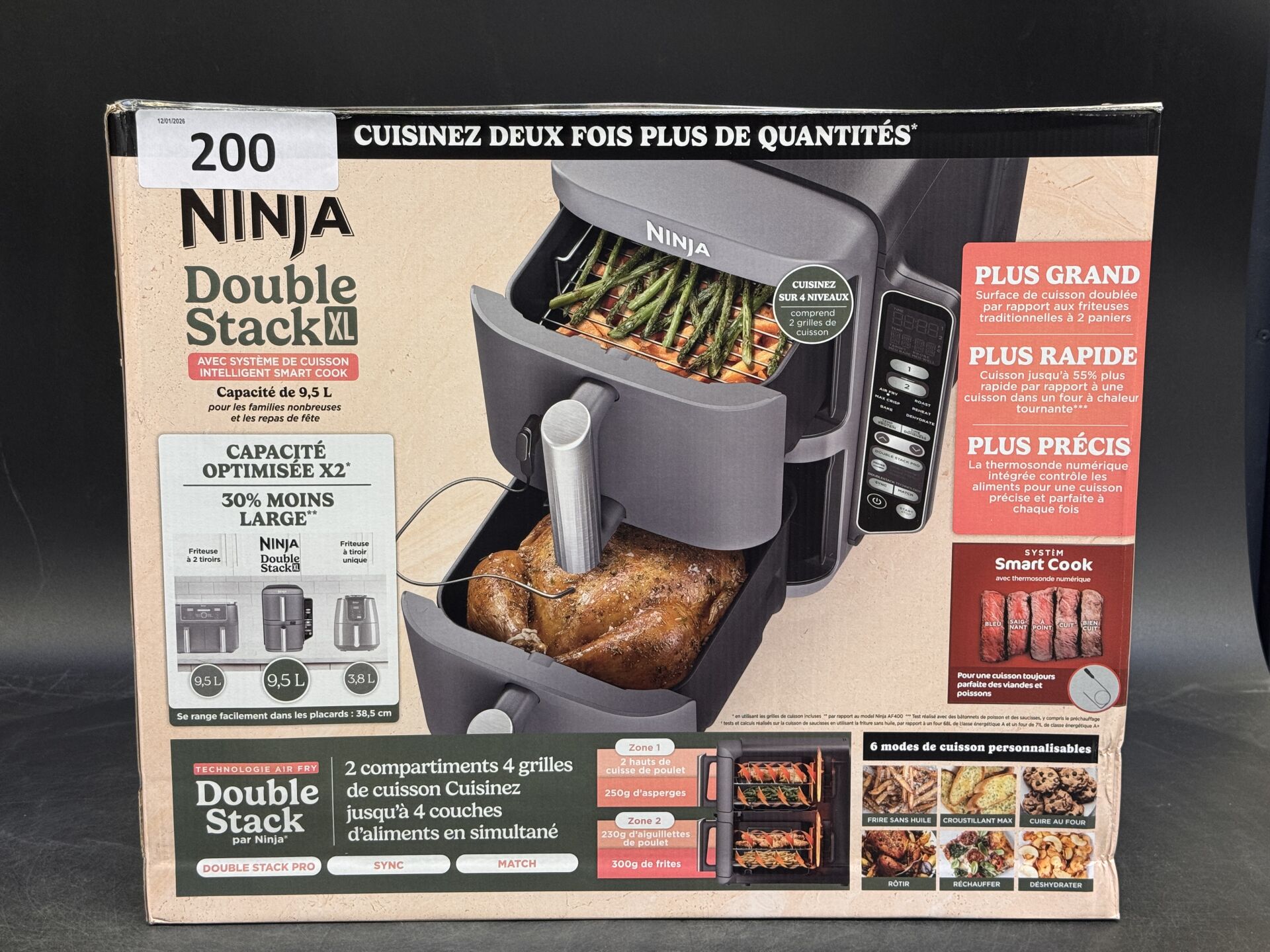 AIRFRYER NINJA DOUBLE STACK XL (avec scellés) EXPEDITION POSSIBLE (ce lot chez vous en France métropolitaine pour 44,94€) Lot issu de colis non réclamés : état de fonctionnement non garanti.