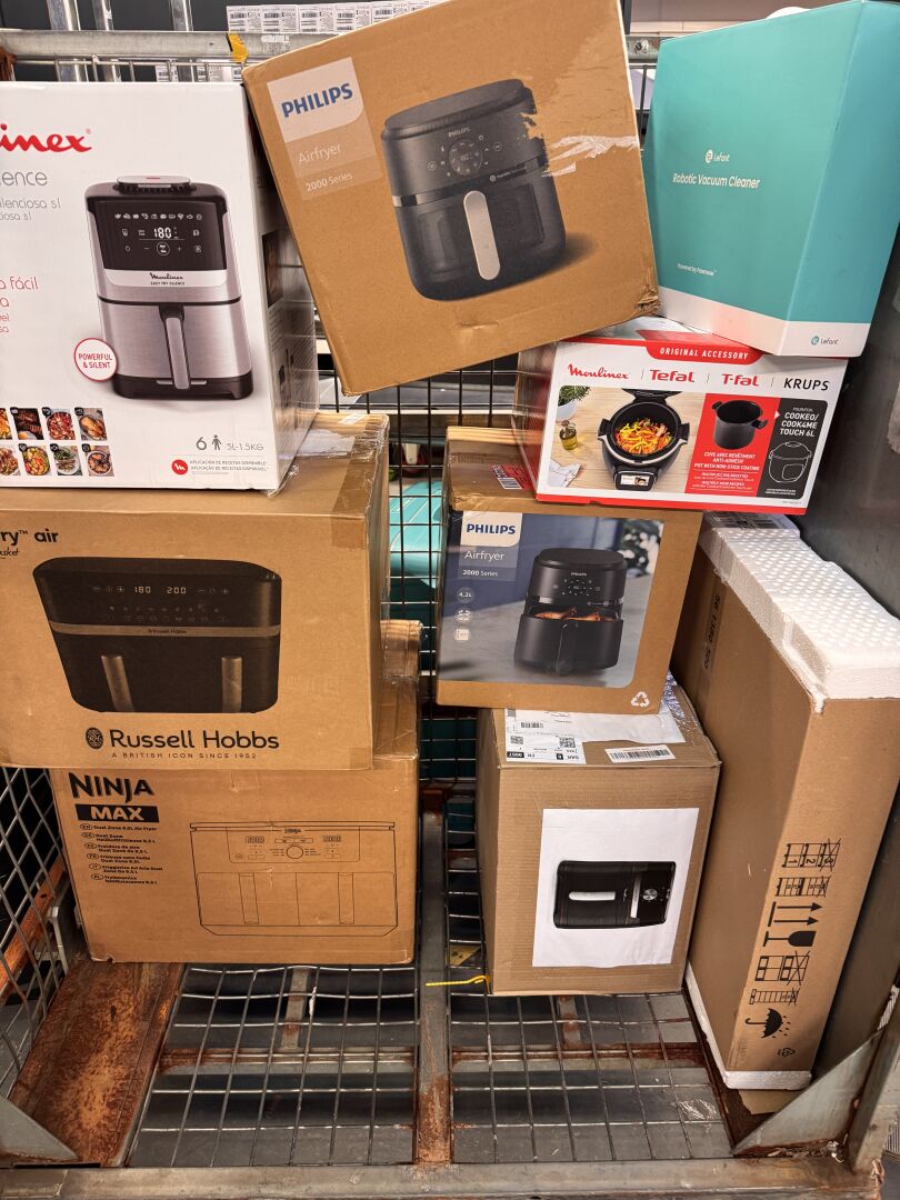 LOT DE PETITS ELECTROMENAGERS DONT AIRFRYER, ASPIRATEUR, TABLE DE CUISSON (expédition sur devis) Lot issu de colis non réclamés : état de fonctionnement non garanti.