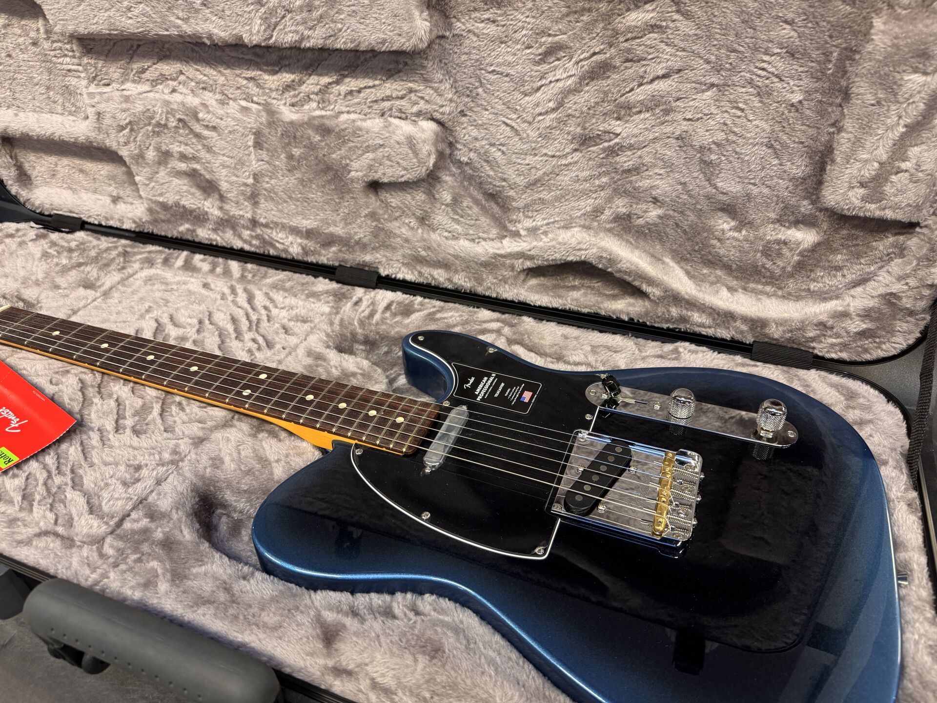 GUITARE ELECTRIQUE FENDER TELECASTER AMERICAN PROFESSIONAL II DARK NIGHT DANS UN ETUI RIGIDE DE LA MARQUE (état magasin) (expédition sur devis) Lot issu de colis non réclamés : état de fonctionnement non garanti.