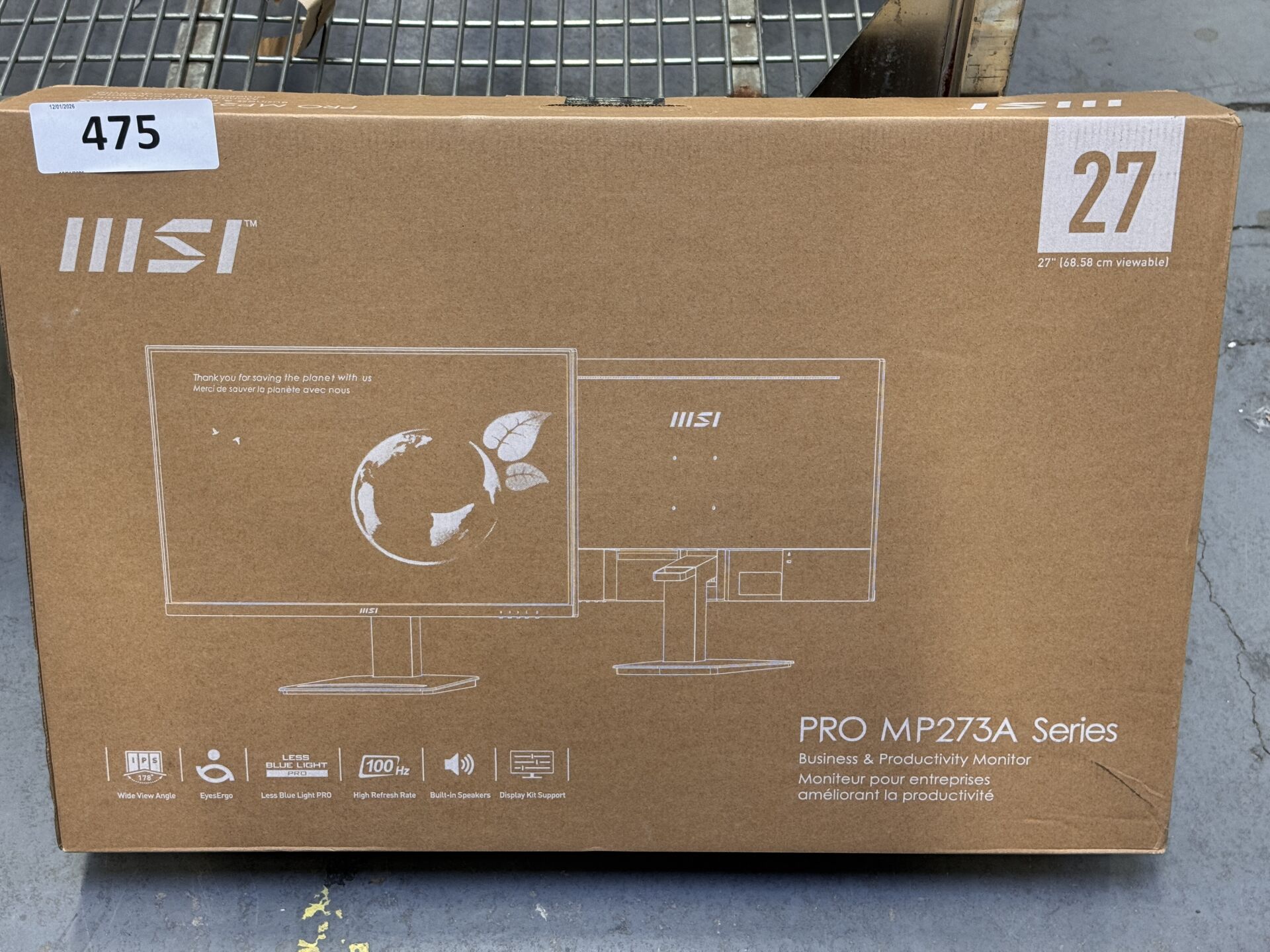 MONITEUR MSI 27" PRO MP273A 4711377035101 (avec scellés) (expédition sur devis) Lot issu de colis non réclamés : état de fonctionnement non garanti (la première image est une image d'illustration)