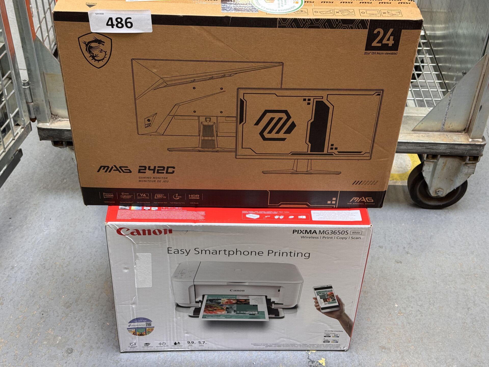 IMPRIMANTE CANON PIXMA MG3650S + MONITEUR MSI 24" MAG 242C (avec scellés) (expédition sur devis) Lot issu de colis non réclamés : état de fonctionnement non garanti