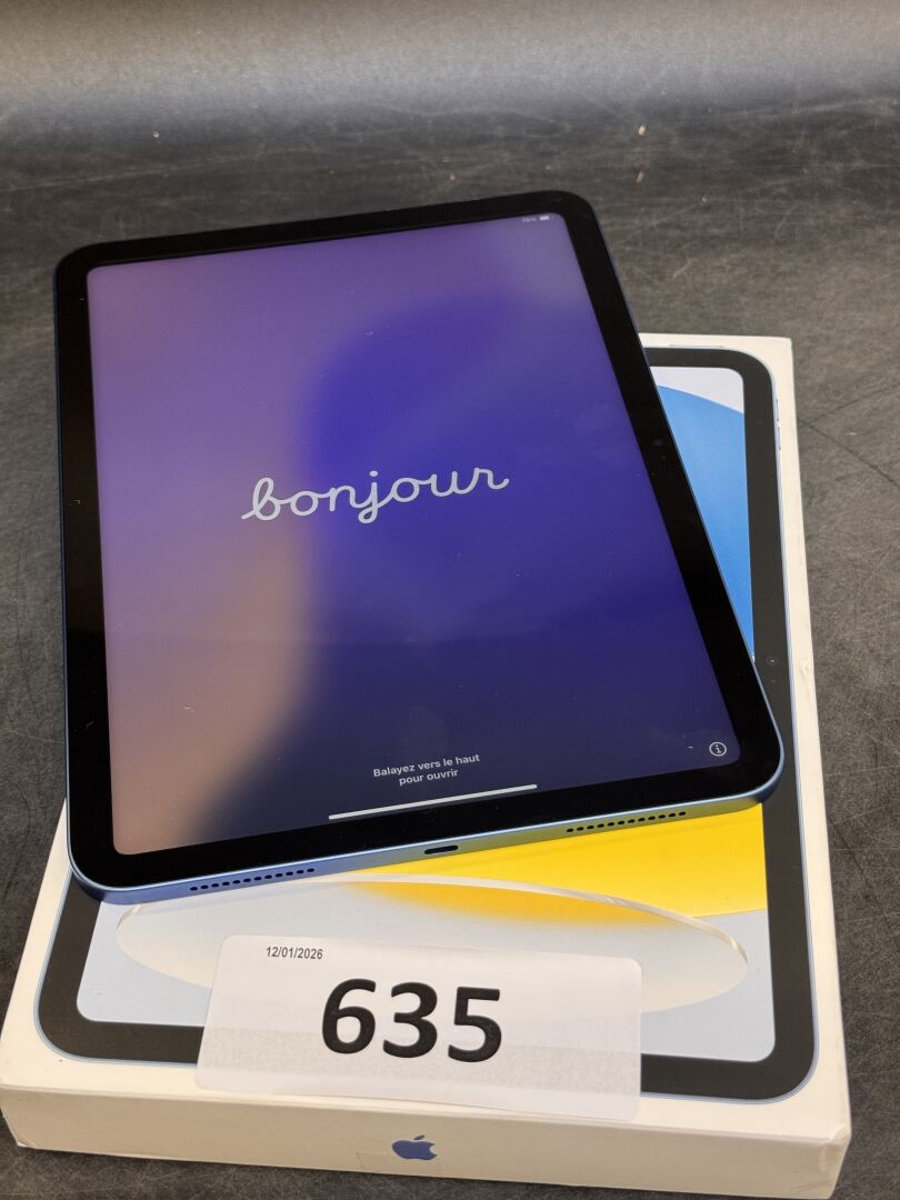 APPLE IPAD A16 256GB BLUE 195950087468 SN JYVN9VWGG2 EXPEDITION POSSIBLE (ce lot chez vous en France métropolitaine pour 25,80€) Lot issu de colis non réclamés : état de fonctionnement non garanti.